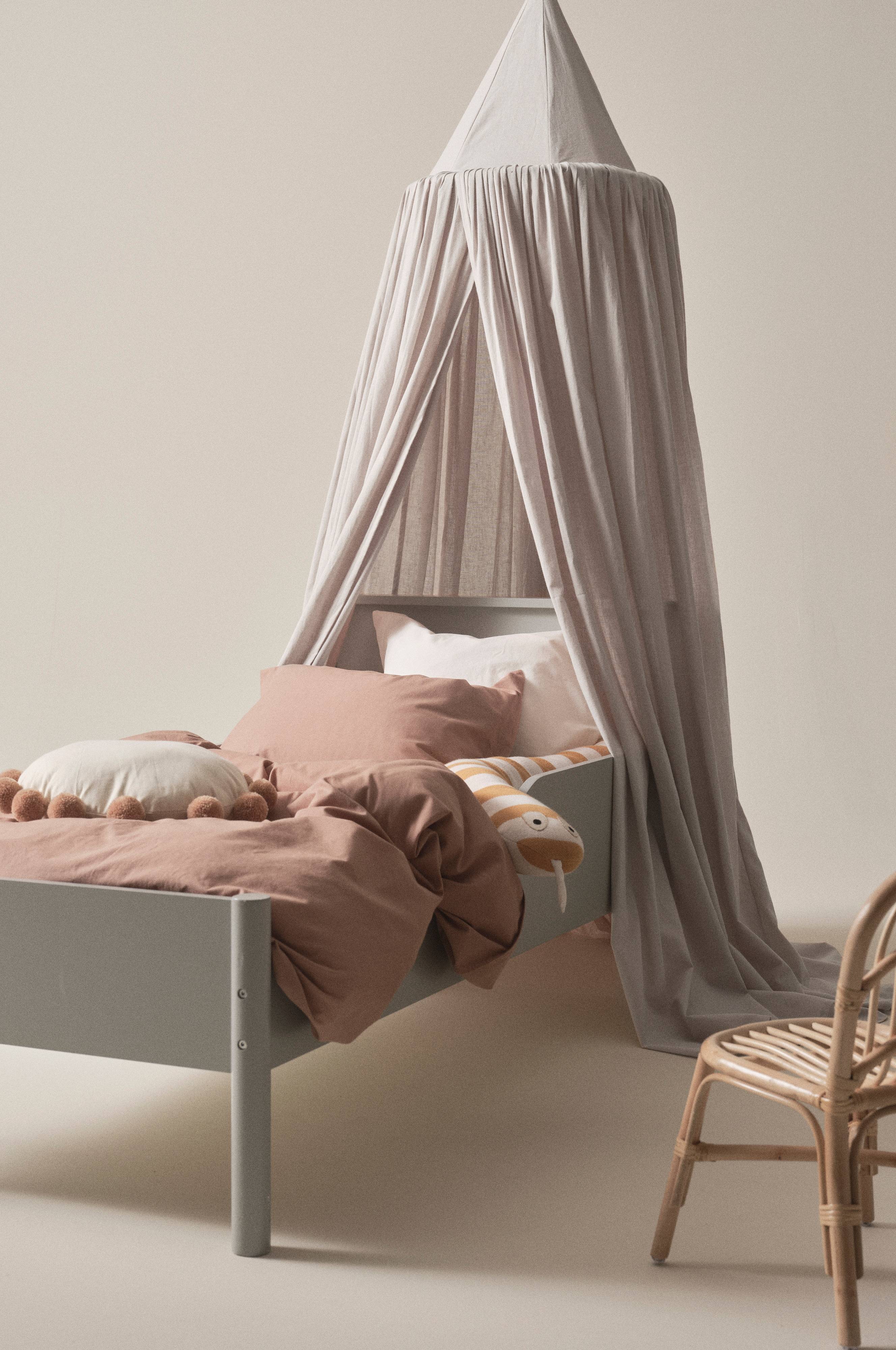 Sänghimmel i härlig och naturlig linnemix av bomull och lin. Metallring upptill som ger fint fall och ögla i toppen för enkel upphängning. Denna sänghimmel är öppen i framkant. Sänghimmeln skapar en extra mysig sovplats.