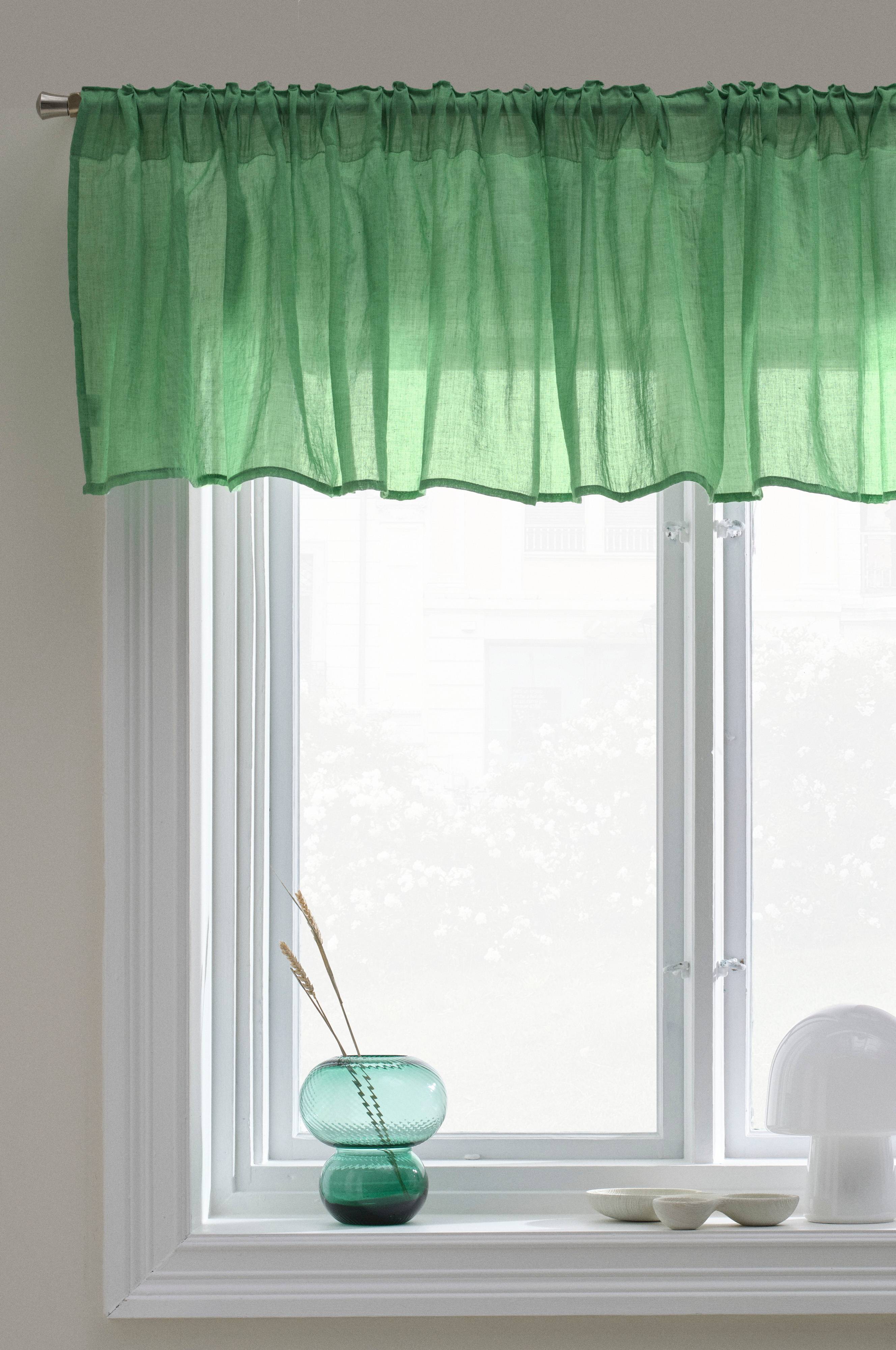 Gardinkappa i skir och luftig kvalité av polyester/bomull som faller lätt. Kappan har påsytt multifunktionsband upptill och kan hängas upp med fingerkrokar, kanal samt dold hälla.