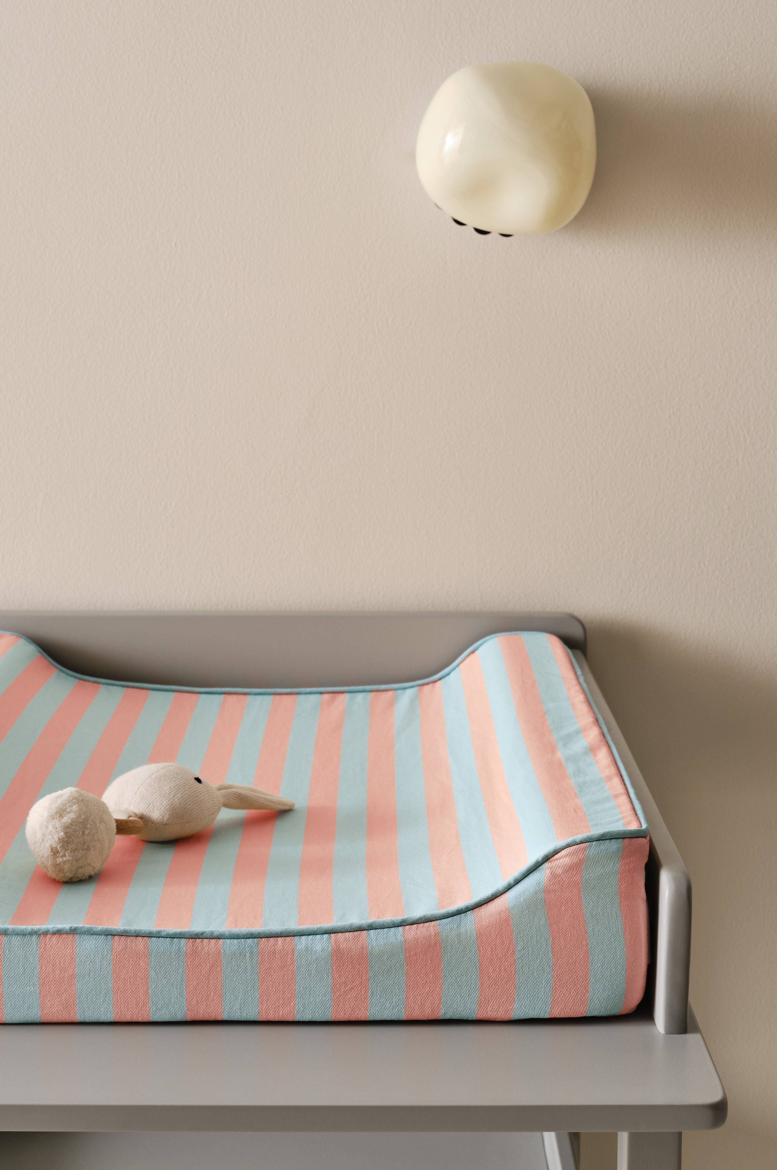 LENI skötbädd är perfekt för barn i åldern 0-24 månader. Överdraget är tillverkat av mjuk bomull och har en vattentät beläggning. Det randiga överdraget är avtagbart och kan handtvättas. Med måtten 10 cm på den högsta punkten och 5 cm på den lägsta erbjuder den en mysig och bekväm plats för blöjbyten. Inred din barnkammare eller ditt badrum med denna moderna och funktionella produkt.