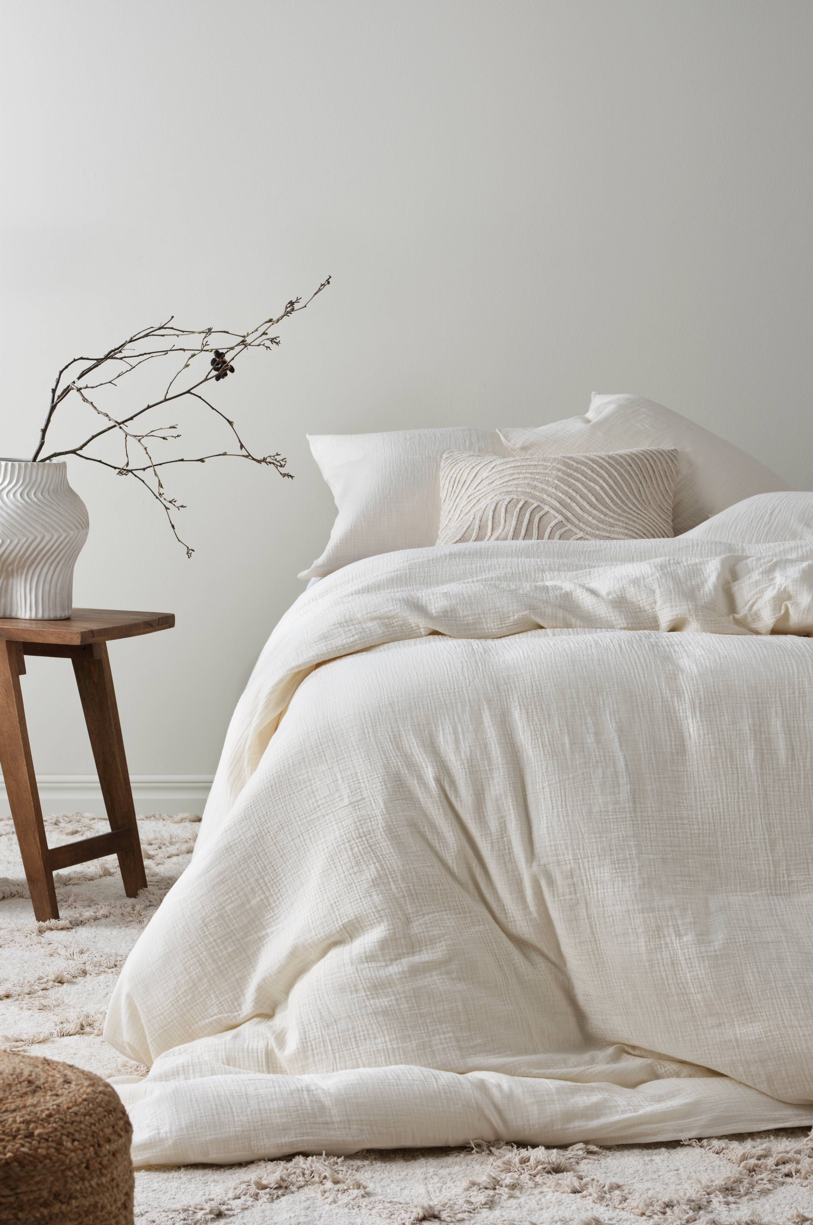 Tips/råd: LILIA är ett program med många olika delar i fina färger som alla matchar varandra. Så nu kan du bädda hela sängen i härlig bomullsmuslin.