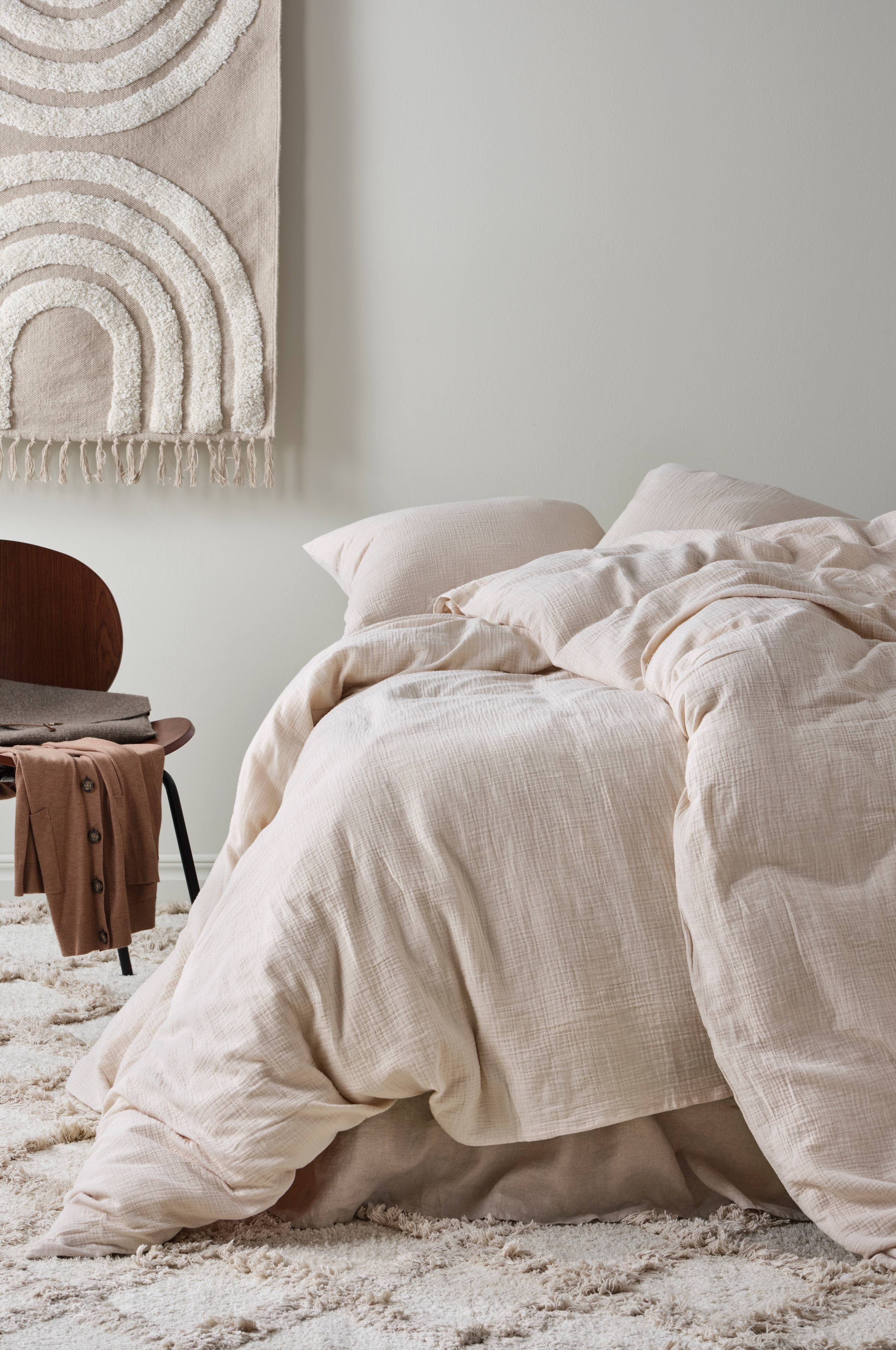 Hetaste muslin sängkläder! Passar 140x220 täcken efter tvätt och torktumlare, men kunde väl ha använt en stängning (t.ex. knappar eller sladdar) längst ner.