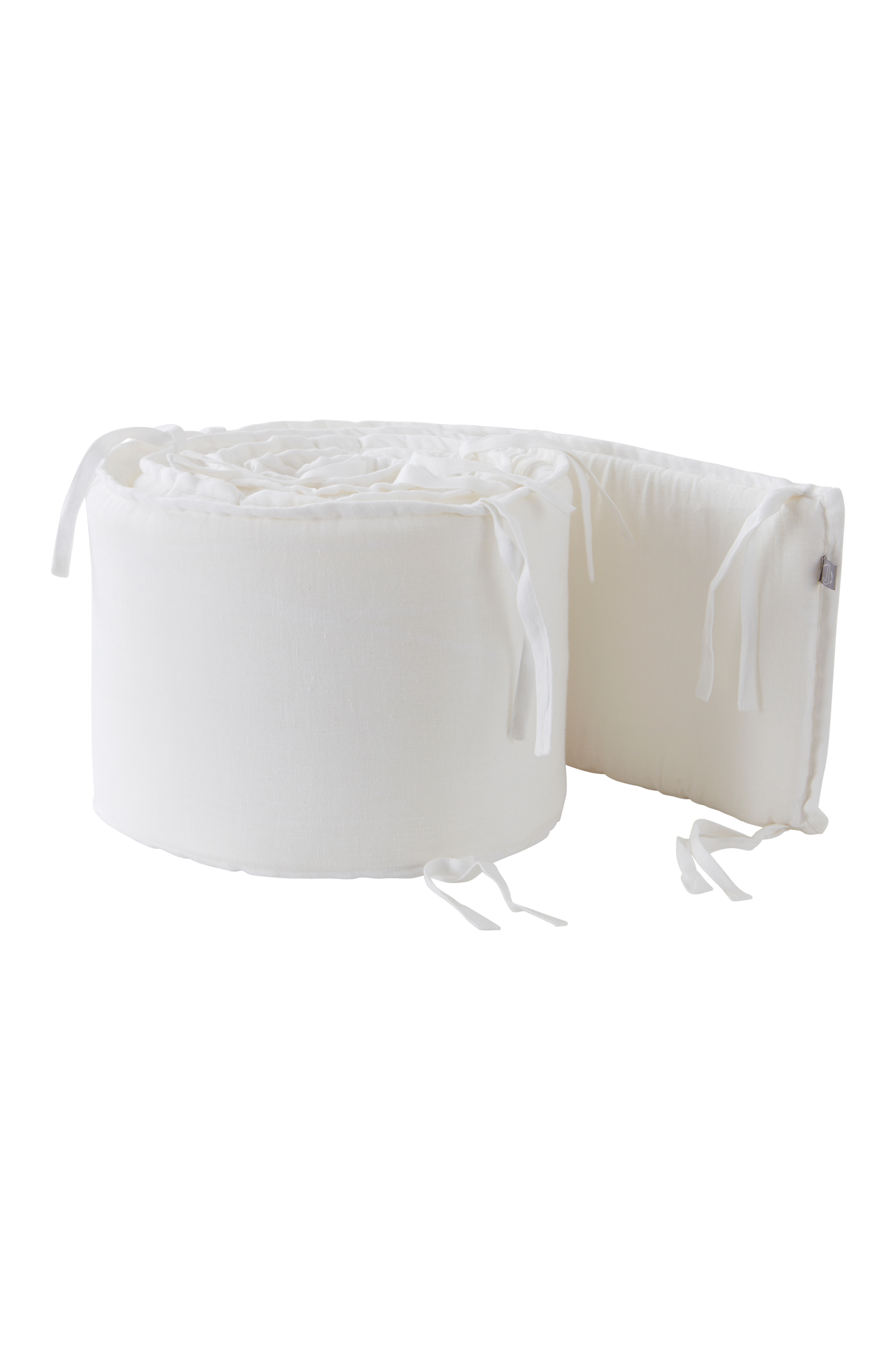 Spjälsängsskydd med yttertyg av naturligt och behagligt linne. Den sköna linnekvalitén har tvättats för att bli härligt mjuk och skön. Fyllning av polyester med mjuk skumgummikärna. Spjälskyddet gör spjälsängen mer ombonad och mysig, samtidigt som det hindrar barnet från att slå emot spjälorna i sömnen. Spjälsängsskyddet knyts fast med knytband. Yttertyget är avtagbart med dragkedja i öppningen och tvättbart. Vikt 160 g/m².