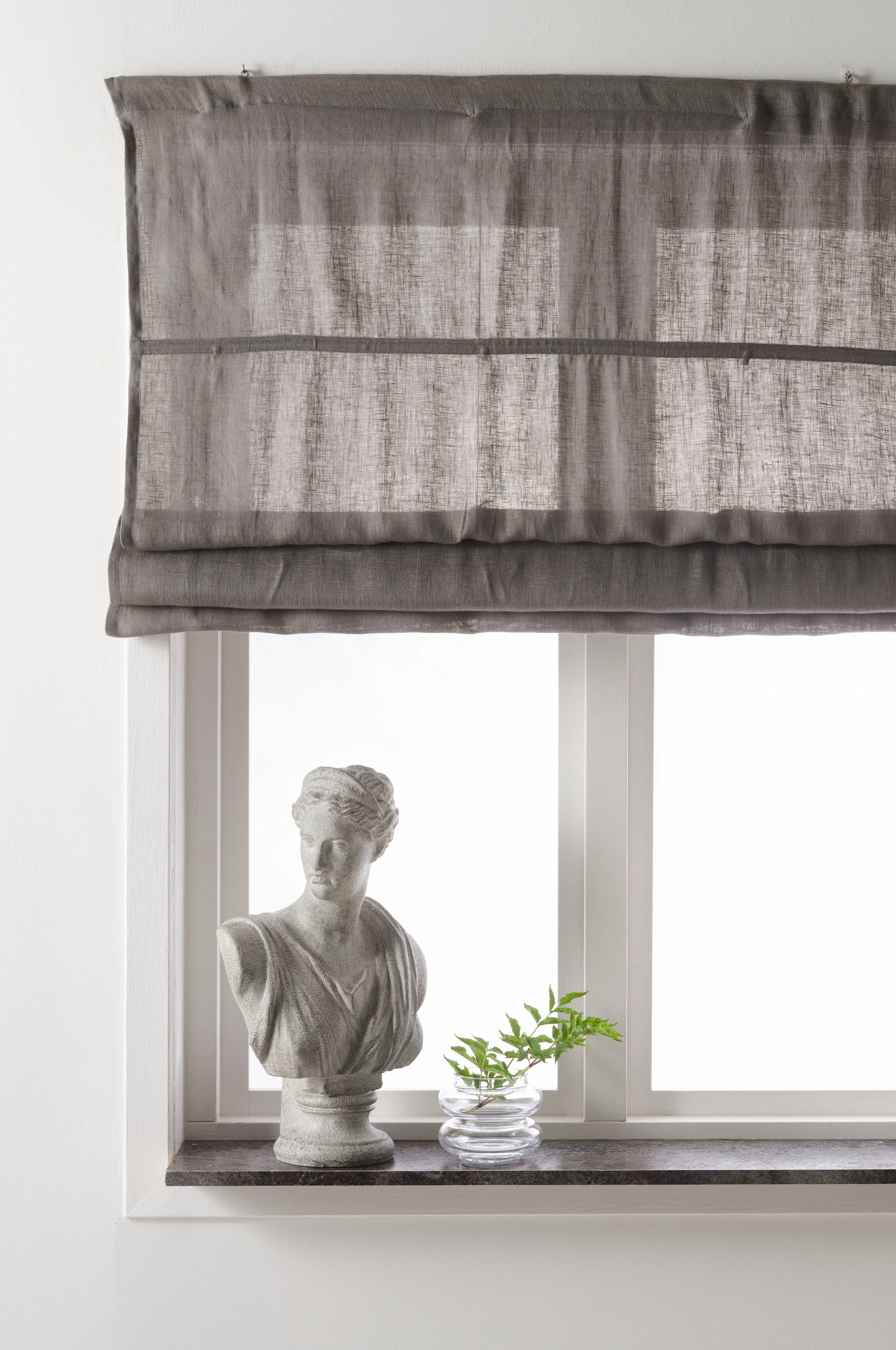 Hissgardin av äkta lin. Hissgardinen är enfärgad och linnetyget ger rustik känsla. Enkel uppsättning med hissfunktion. Kan hängas på vanlig gardinstång.
