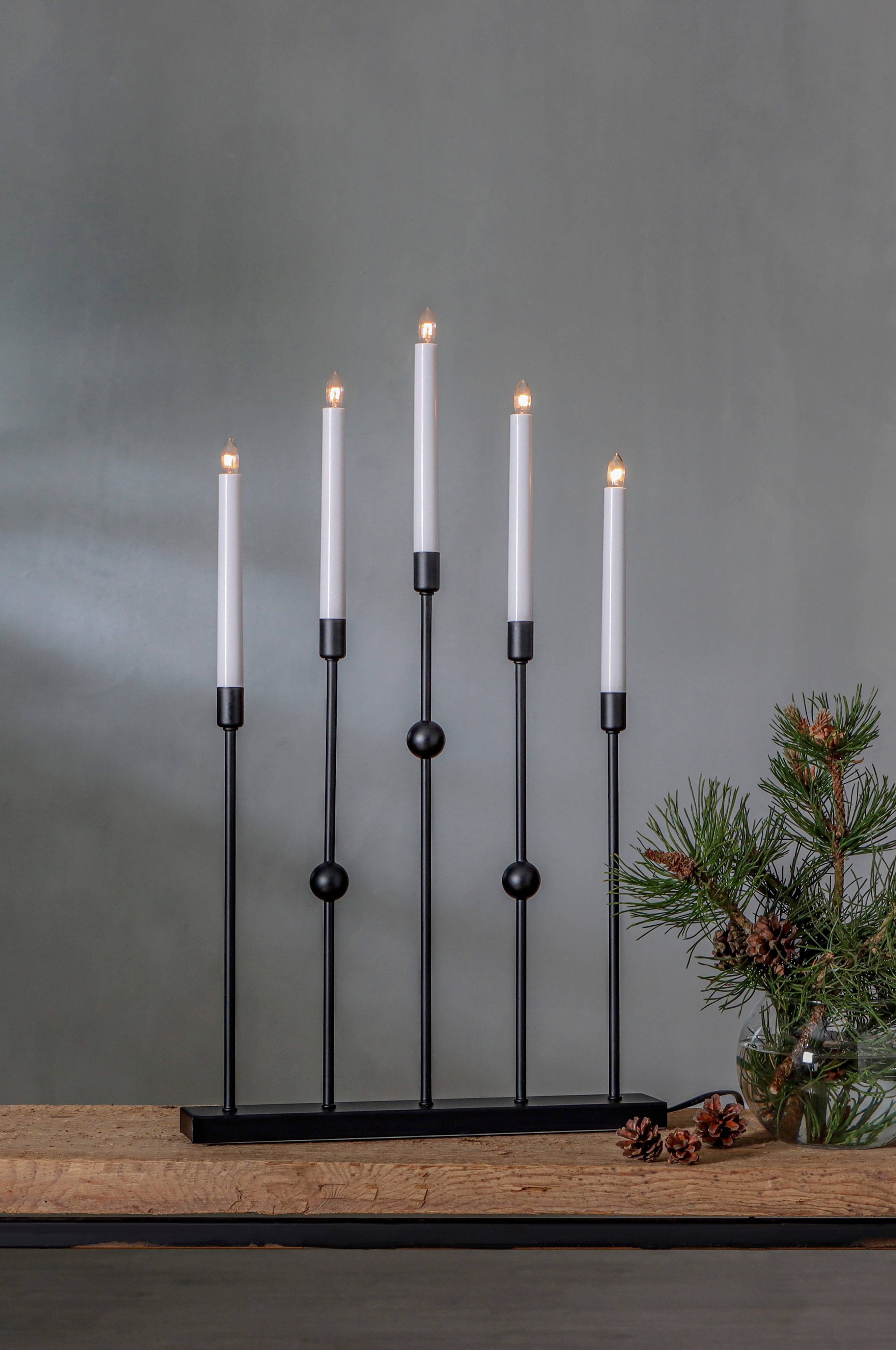 Stilren adventsljusstake i metall. Färgen är mässings. Ljusstaken har 5 ljuskällor med mysigt sken. Placera i ett fönster eller på en skänk, passar utmärkt till advent och jul.