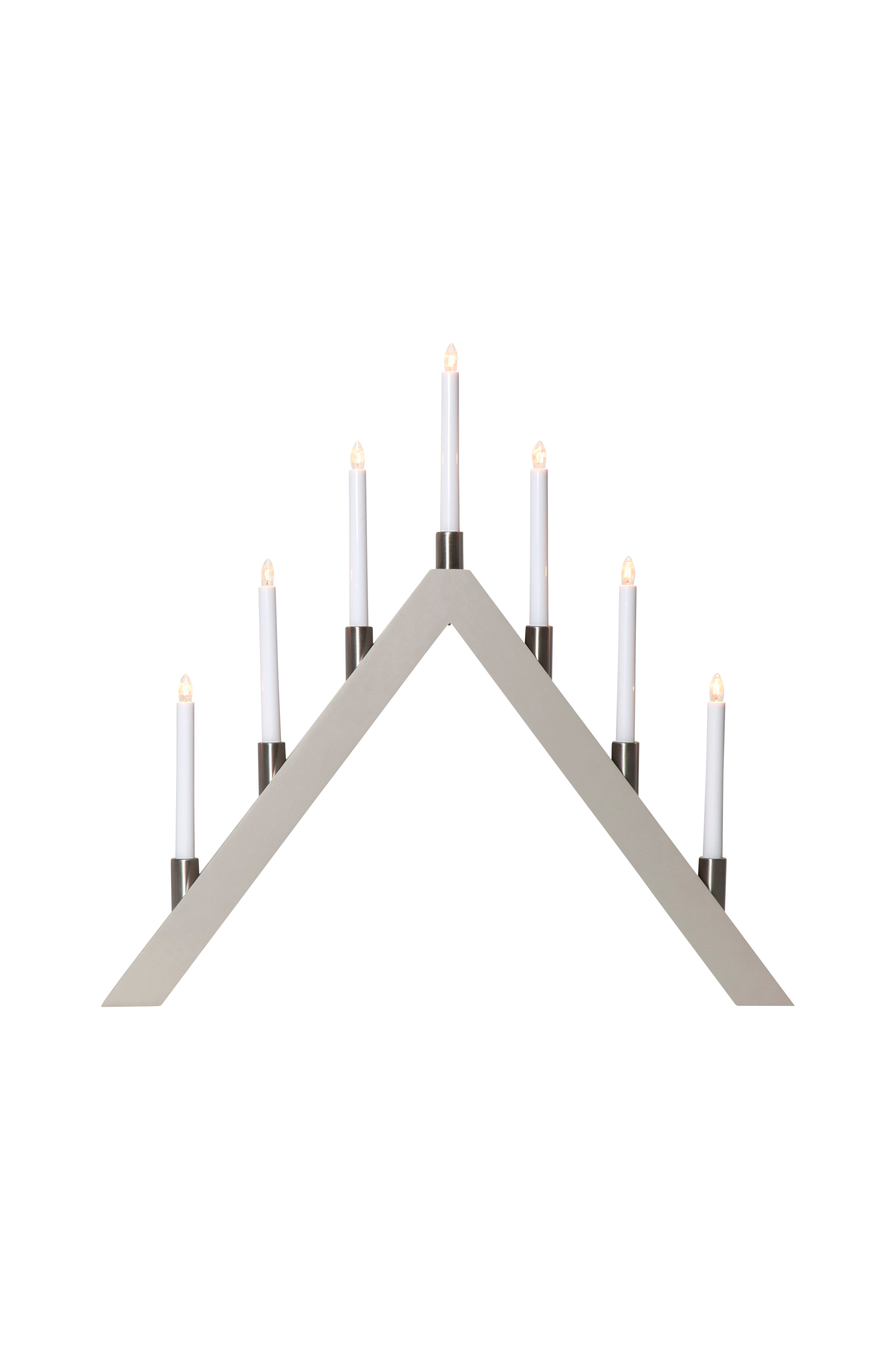 Vit 7-armad träljusstake med dekorativa ljushållare. En vacker adventsljusstake som sprider julstämning i hemmet. E10-sockel, ljuskällan är 34V/3W.