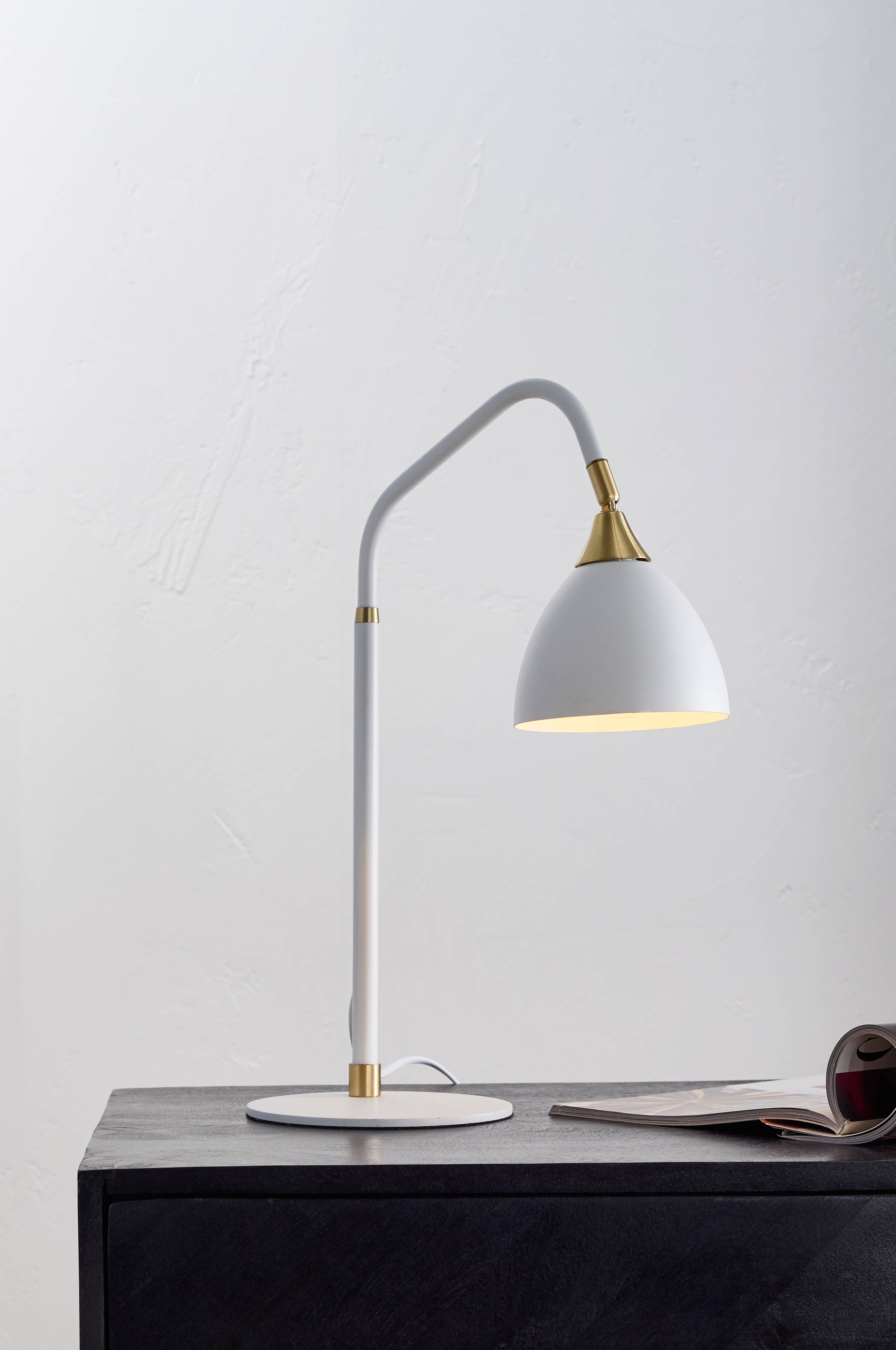 Bordslampa av metall med små mässingsdetaljer. Skärmen går att vinkla åt alla håll. En bordslampa att placera överallt där du behöver extra ljus och trivsel i ditt hem. Sladdlängd 1,5 m.