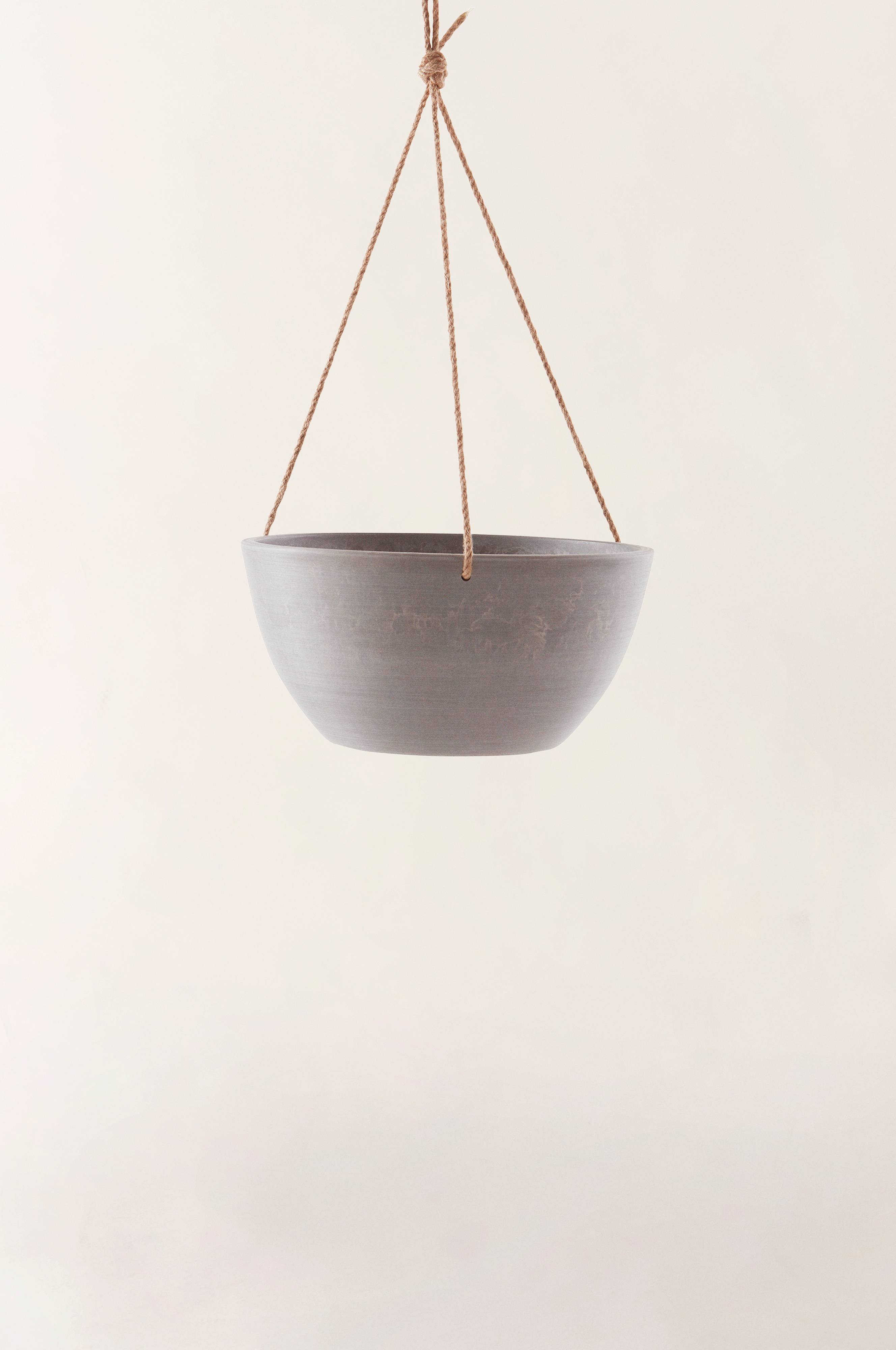 Ampelkrukan har snören för upphängning. Snöret är tillverkat av jute, som är ett naturmaterial. Jute påverkas av sol och vatten och bryts ner med tiden.