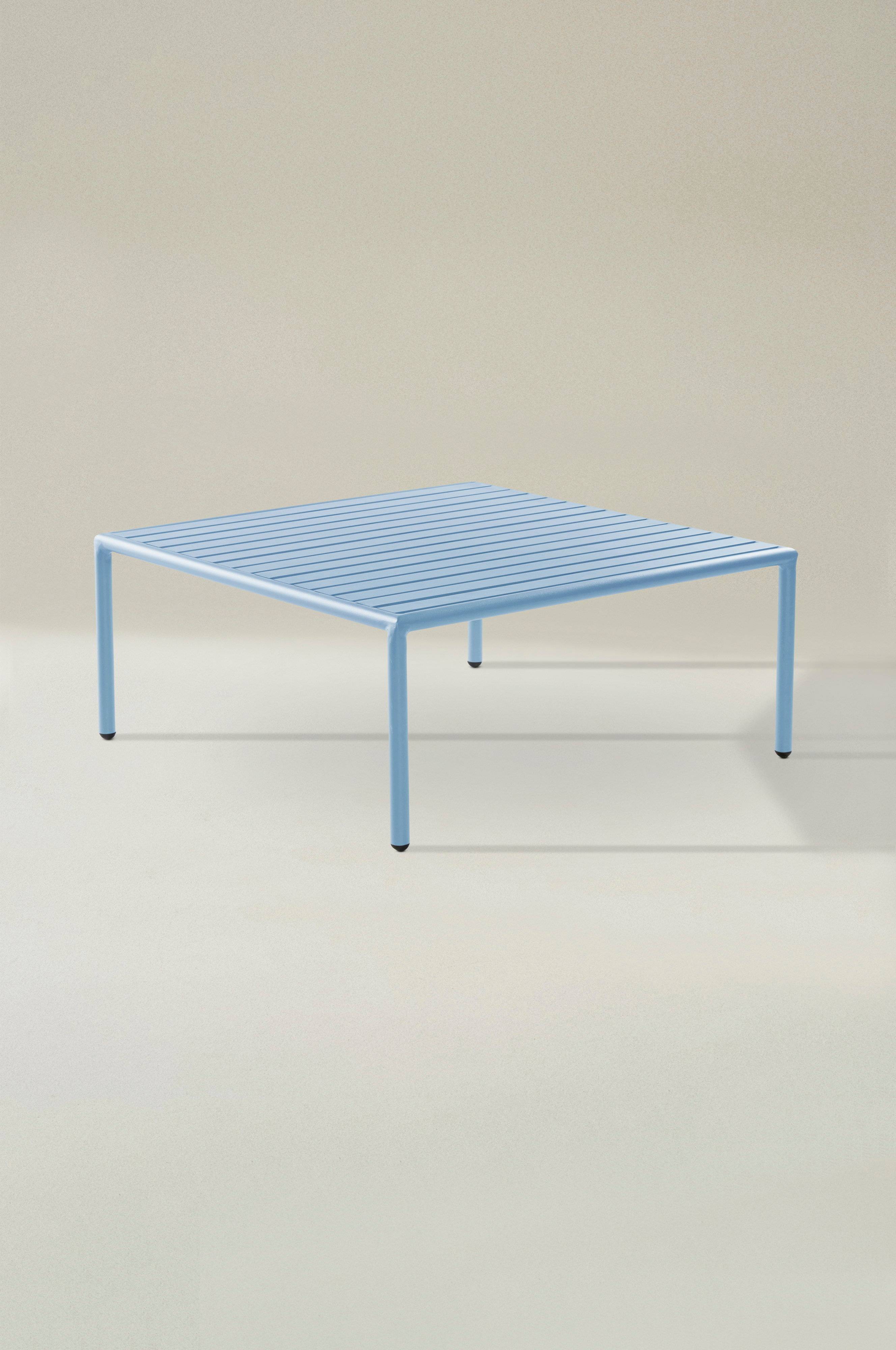 Soffbord av pulverlackerad aluminium med matt yta som inte bländar i solskenet. MENTON tål att stå utomhus och det gör utelivet enklare. Du slipper bära så fort du vill sitta ute. Möbeln är nätt och ger rätt loungekänsla. .