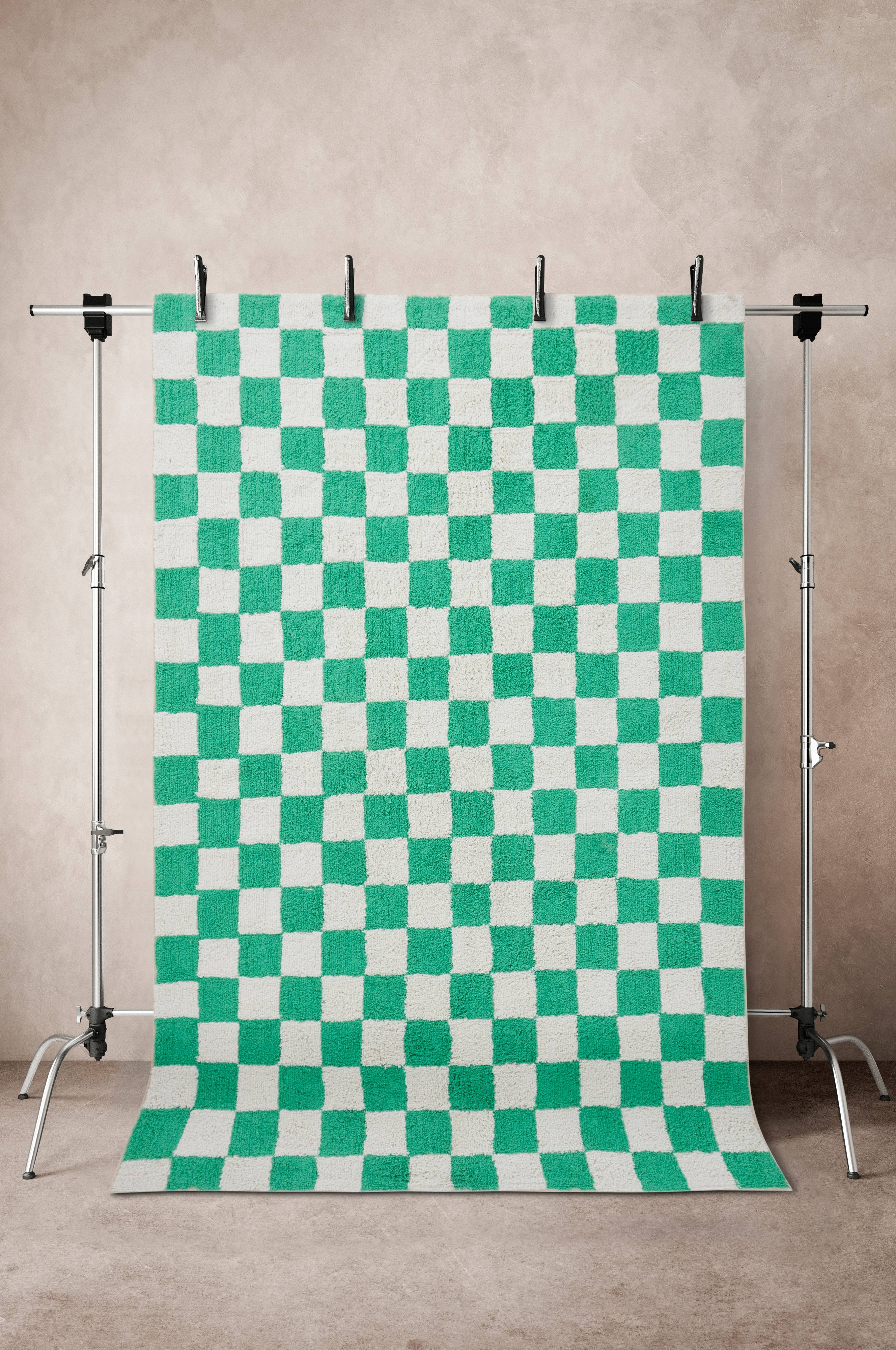 ElpyBomullsmatta av ekologisk bomull. Den sköna mattan har mjuk lugg med garnfärgade rutor och den har en vävd, naturfärgad kant runt om. Lugghöjd 1-1,5 cm. Tjocklek 2 cm. 1300 g/m².
