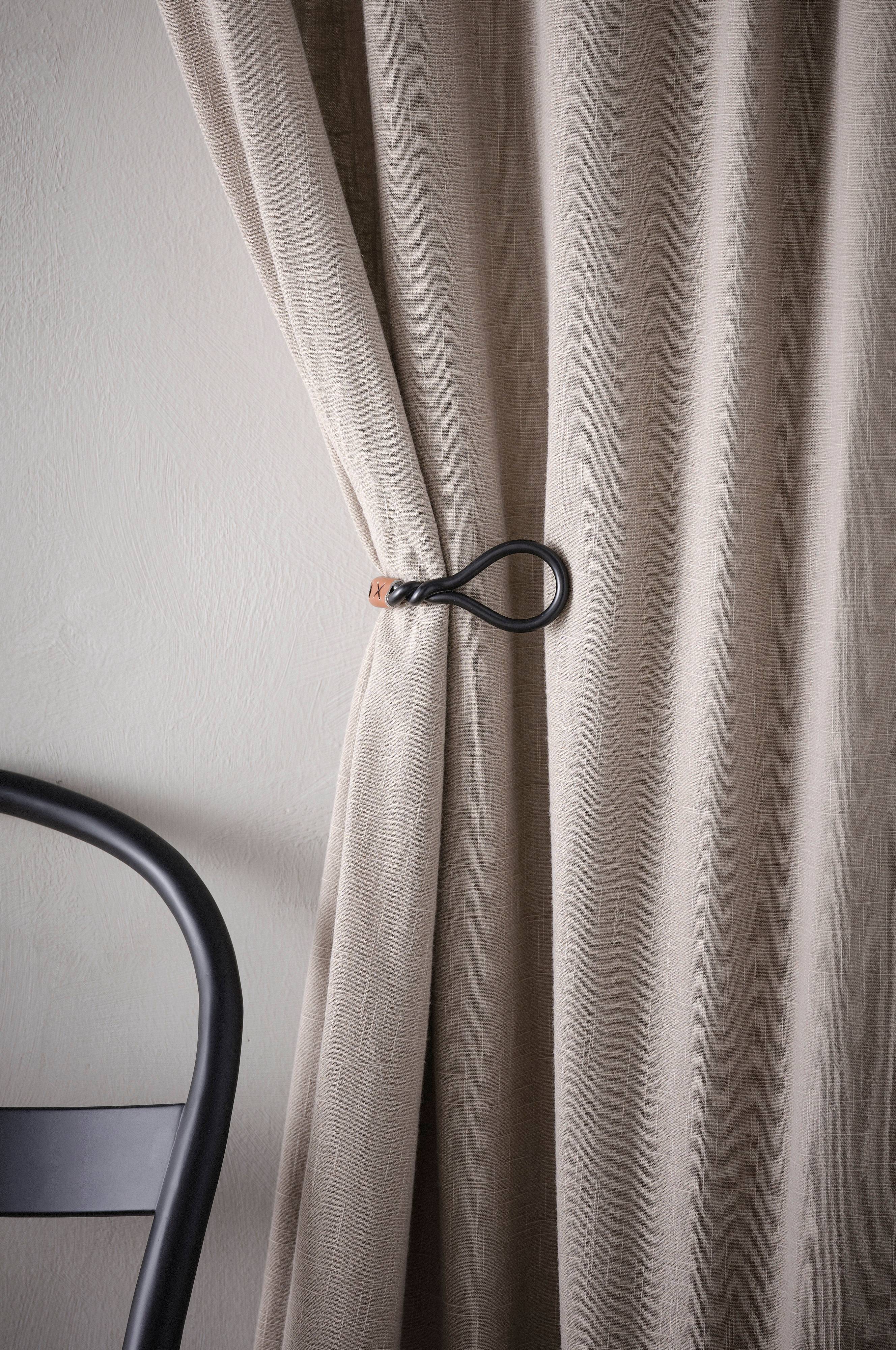 2-pack omtag av metall. Kroken är klädd i skinnimitation - modernt och elegant. Med gardinomtag är det enkelt att få en snygg uppsättning utan ansträngning. Gardinerna hänger snyggt och får ett fint fall. Plugg och skruvar ingår. Väggavstånd 9 cm.