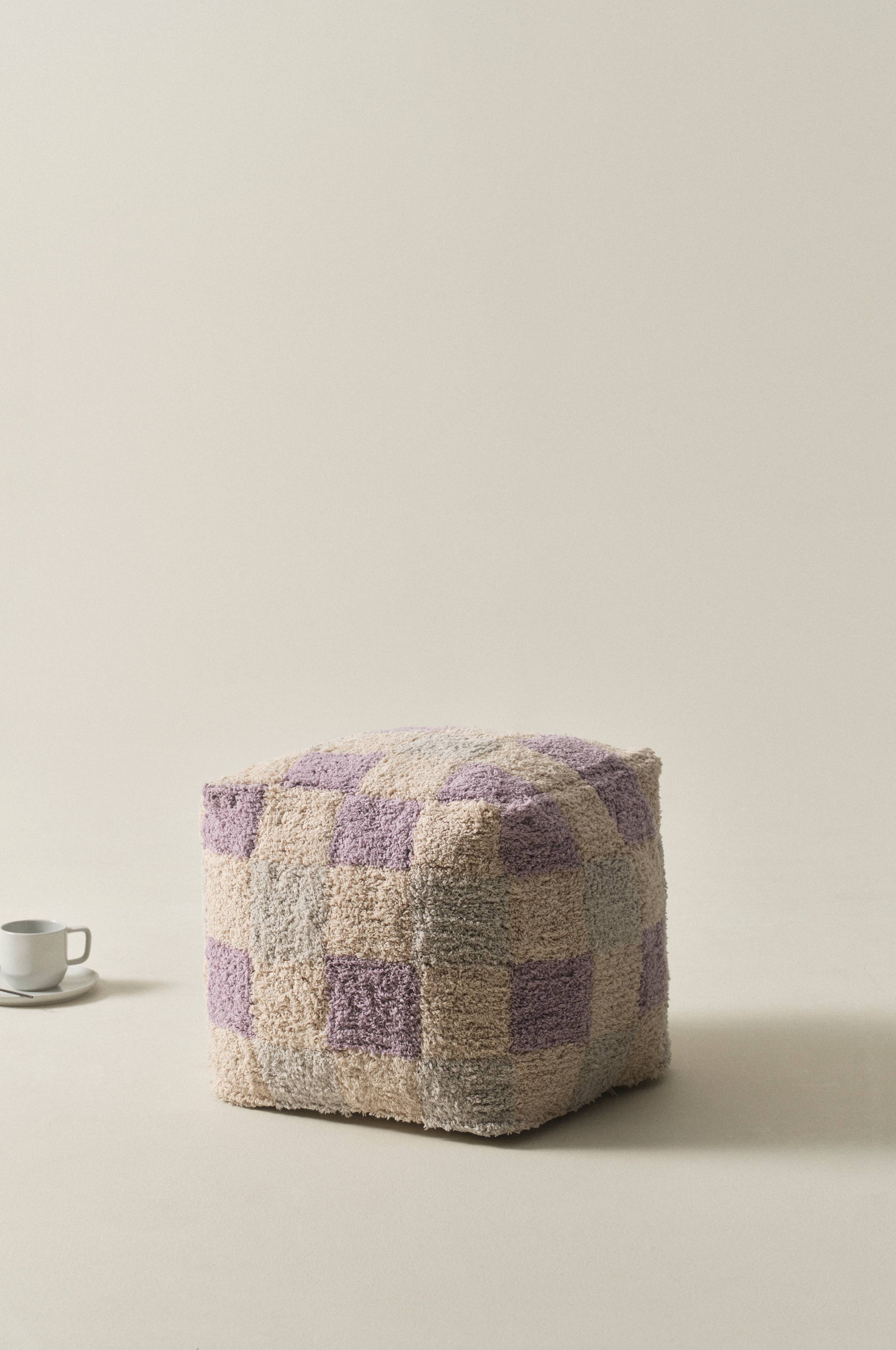 MINDEN är en mjuk, kubformad sittpuff som klätts med schackrutig bomullsmatta med mjuk, kort lugg. Fyllningen är av cellplastkulor och puffen formar sig bekvämt när du slår dig ner. Klädseln är avtagbar. Lugghöjd 1 cm. Tjocklek 1,1 cm. 2200 g/m².