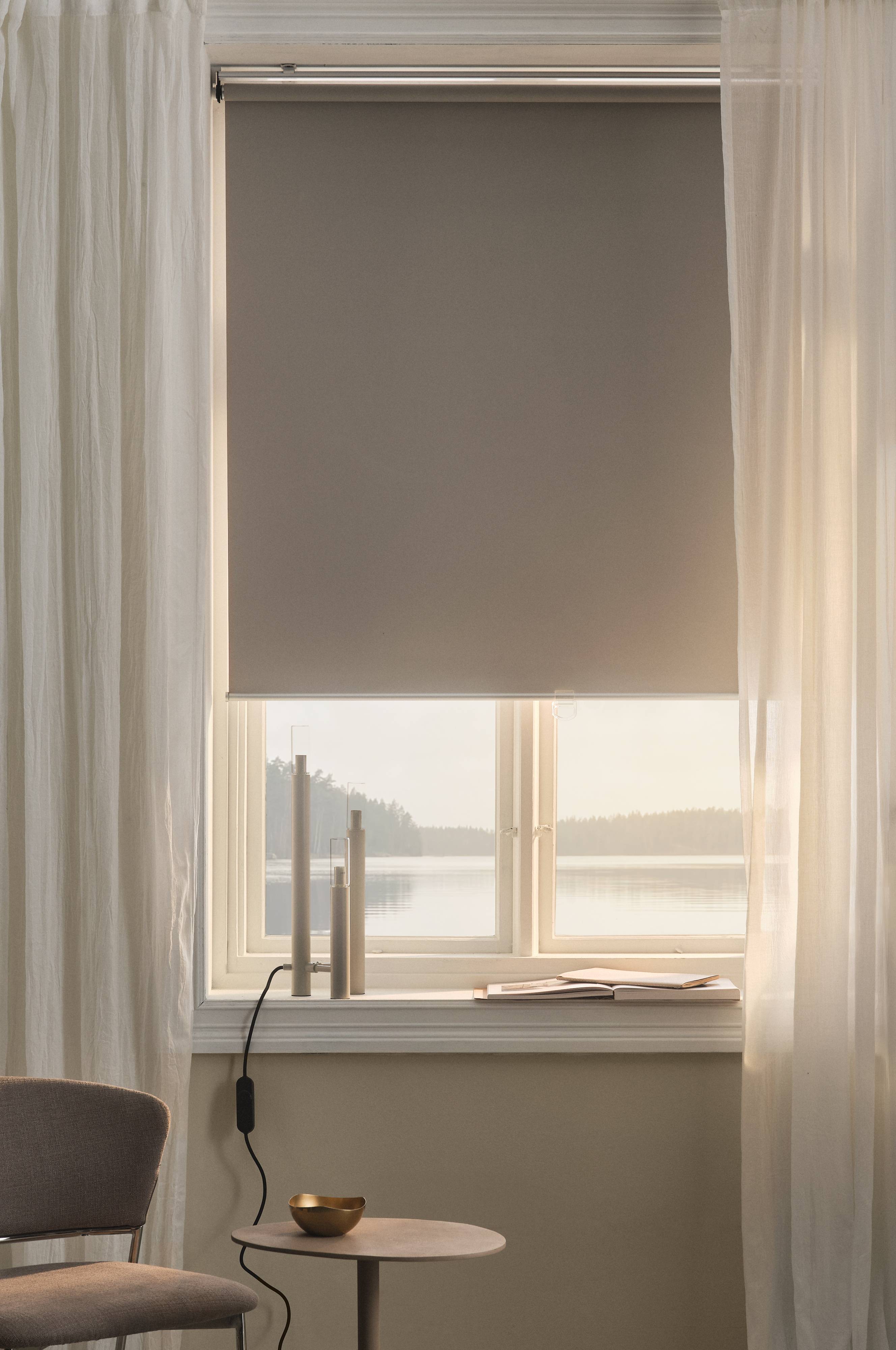 NIKA är en rullgardin för mörkläggning. Rullgardinen är tillverkad av polyester i en mikrokvalitet som är extra smidig och följsam, samtidigt som ljuset ändå stängs ute av en mörkläggande beläggning. 50% är återvunnet mateiral. Gardinen är lika fin på baksidan som på framsidan. Rullgardinen har metallfäste upptill som du fäster i väggen. Nedtill sitter en rund metallstav. Ett transparent plastgrepp på den nedre staven gör att du enkelt drar ned och skjuter upp rullgardinen. Fästen ingår. Enkel att montera. Monteringsanvisning medföljer.