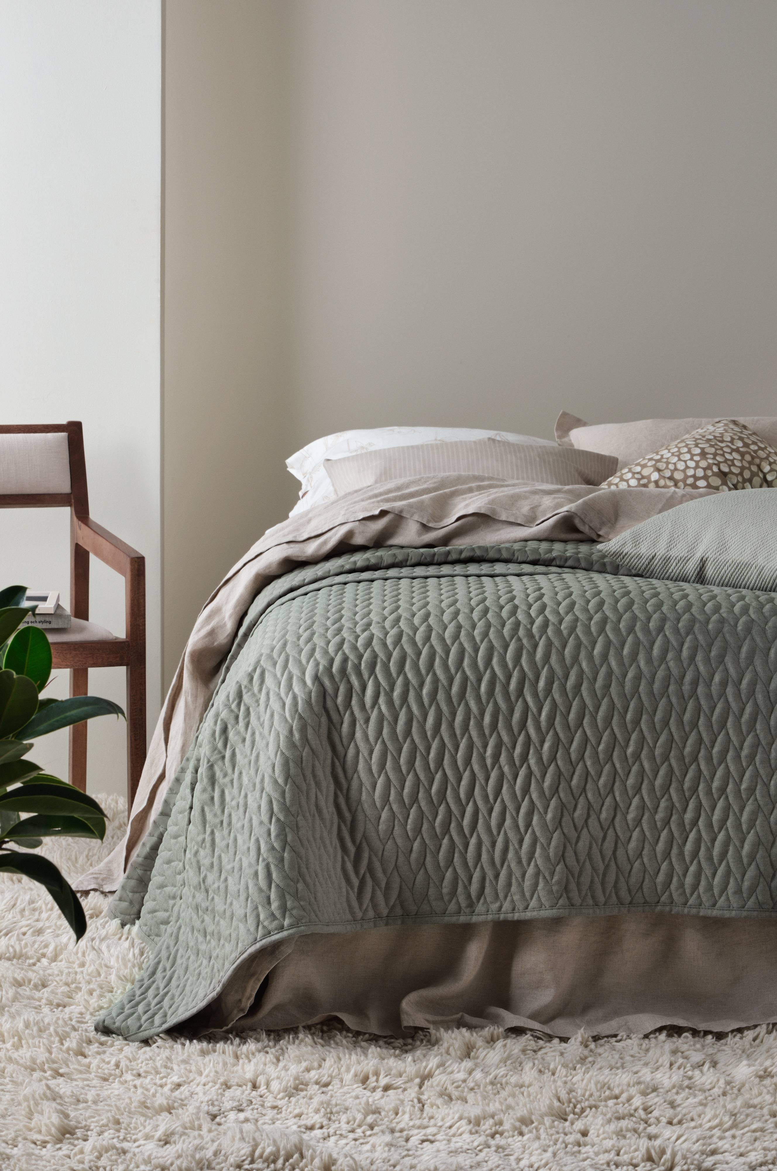 Överkast för dubbelsäng. Överkastet är av polyester med härlig linnekänsla och oregelbundet quiltat mönster. Sömmarna som ger ett dekorativt mönster håller också fyllningen på plats och överkastet får en kompakt och smidig känsla som gör det enkelt att hantera och enkelt att bädda med. Söm runt om ger en fin kantning. Kuddfodral medföljer ej, köps separat.