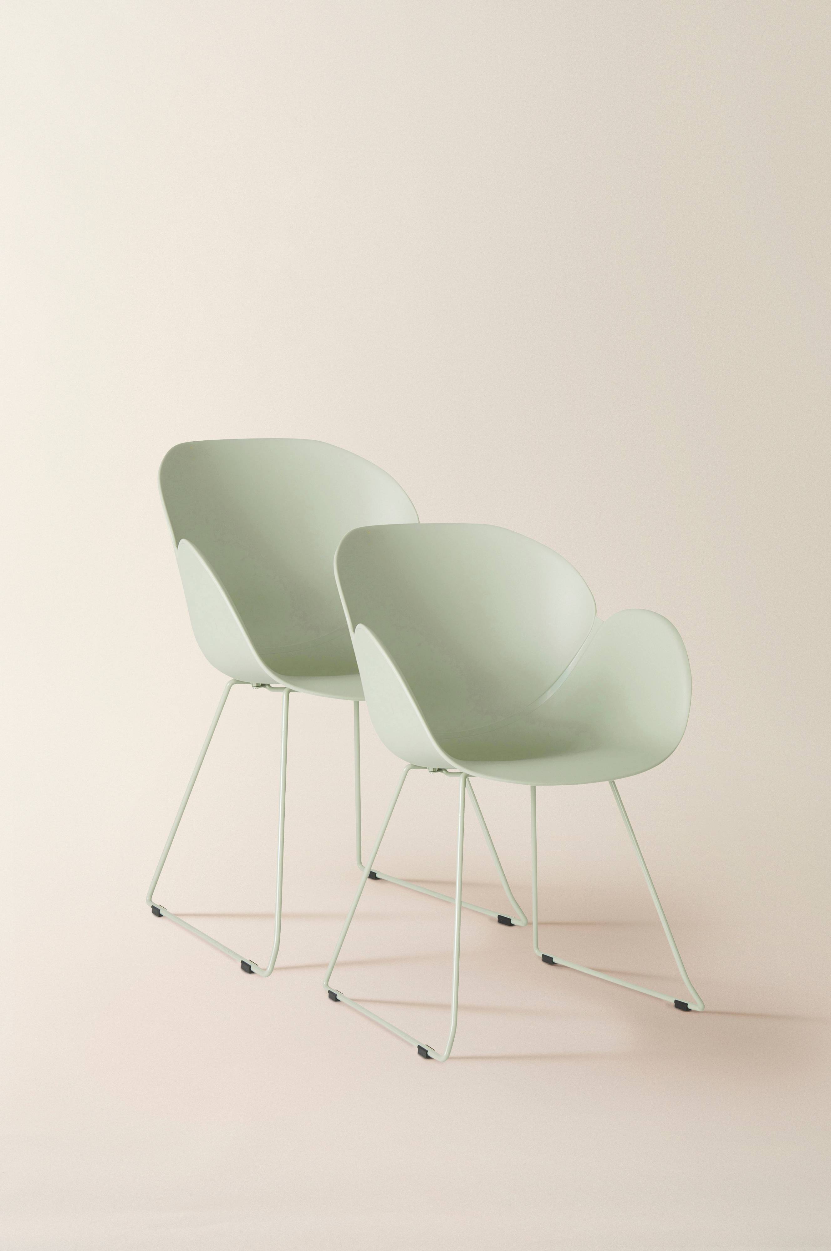 Beskrivning: 2-pack stolar i formgjuten polypropylen med kromat underrede.