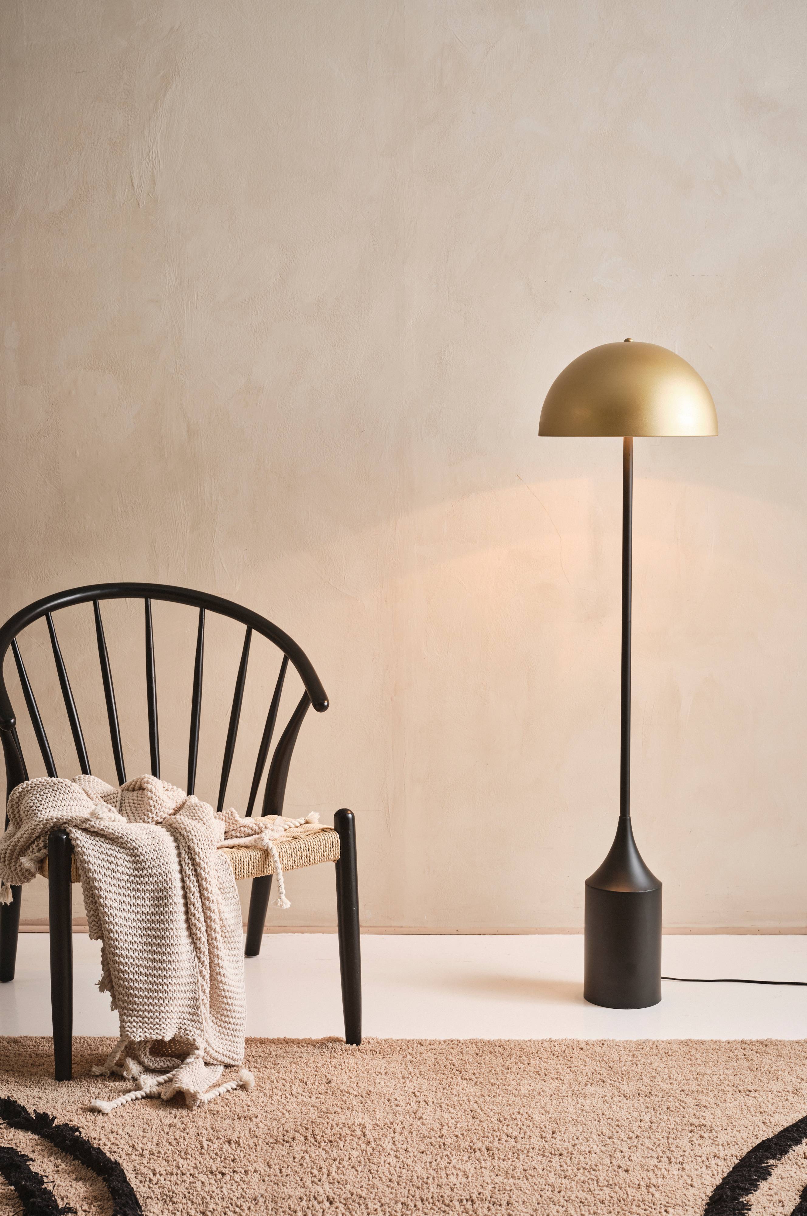 Golvlampa av metall med snygg färgeffekt. QUAY är en lampa som tar plats, den är både originell och läcker och står som en möbel för sig själv. Svart sladd av plast med strömbrytare på sladden.