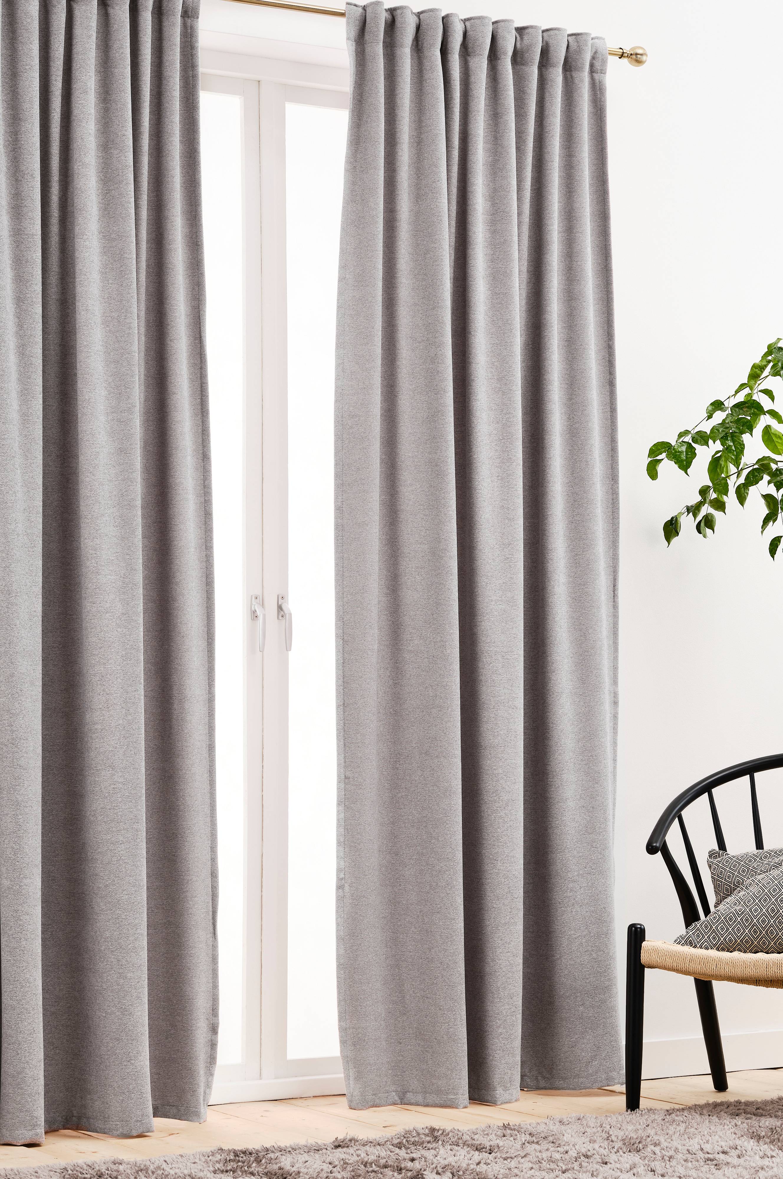 2-pack gardinlängder med fin struktur i borstad chenille. Med påsytt multifunktionsband. Gardinen kan hängas upp med fingerkrokar, kanal samt dold hälla.