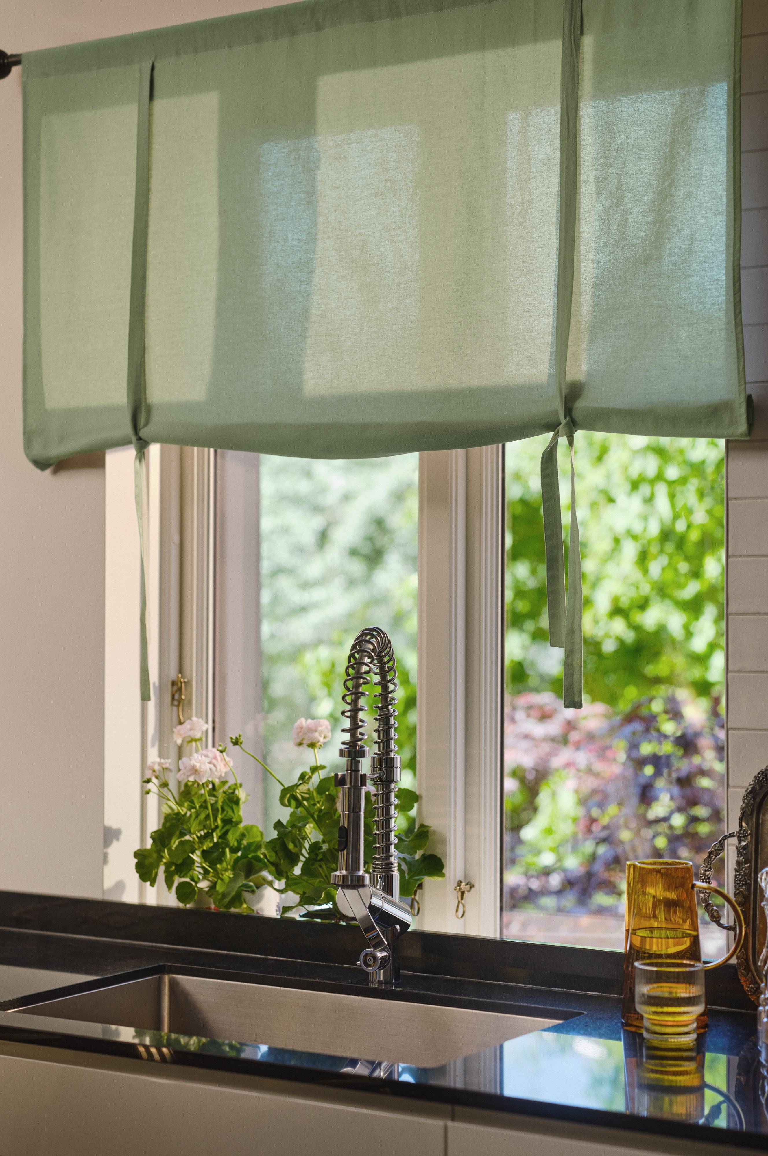 Roll up-gardin av följsam bomull i mjuka, mustiga nyanser. Roll up-gardinen justeras enkelt efter dina önskemål om insyn. Hängs på vanlig gardinstång. Höjden regleras med knytband. Enfärgat ger stor frihet när du matchar och det är snyggt att blanda upp med andra mönster och färger om du vill.