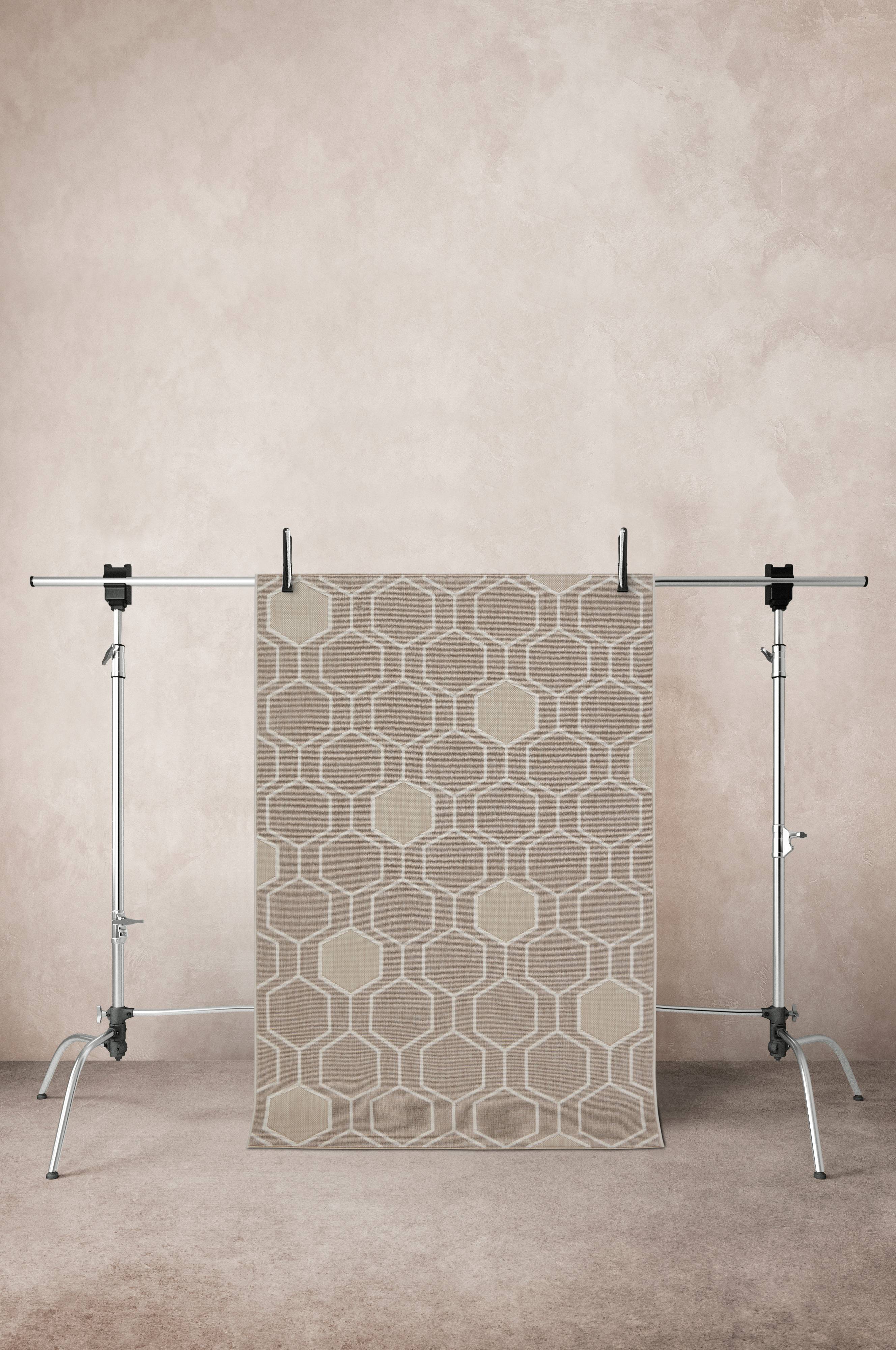 Hexagonmönstrade SAN DONA ger modern känsla till din trädgård, balkong eller uterum. Den är tillverkad för mångsidig användning och övergår enkelt från utomhus- till inomhusmiljöer. Den unika sexkantiga designen förhöjer varje område och ger det en modern men ändå tidlös charm. SAN DONA är motståndskraftig mot väder och vind och behåller sin livfulla design säsong efter säsong, perfekt för att framhäva köksgolv eller komplettera din trädgårds naturliga skönhet. Förvandla ditt utrymme med denna iögonfallande, anpassningsbara matta.