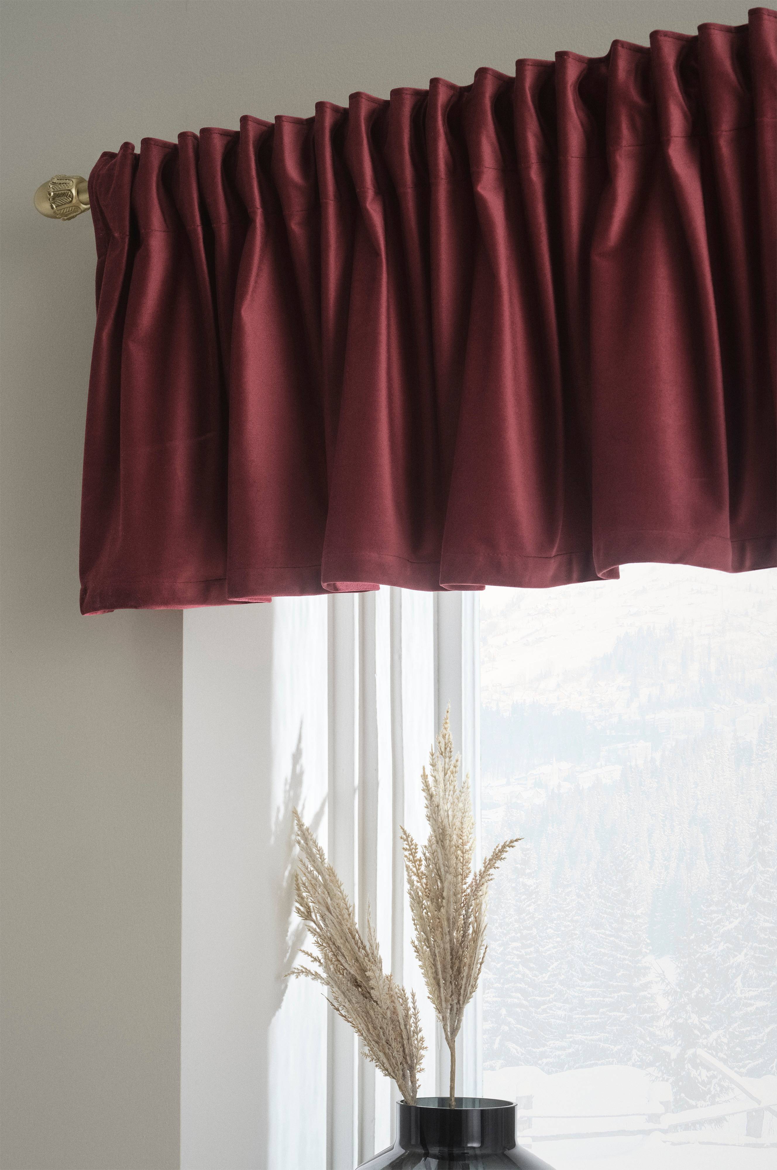Gardinkappa i enfärgad sammet av polyester. Sammet har fin lyster och mjuk känsla, färgen skimrar vackert i olika ljus.