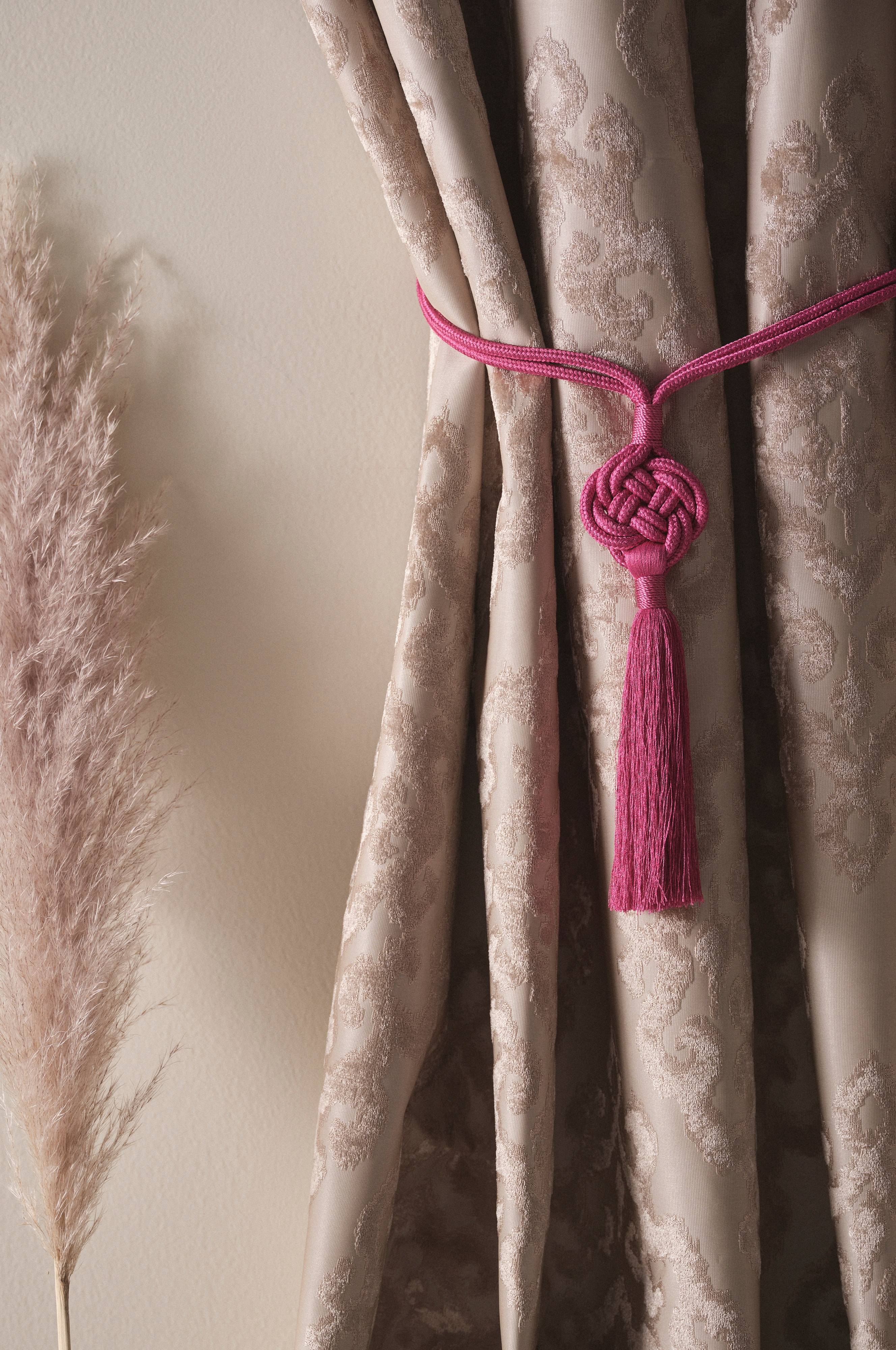2-pack tofsomtag av viskos med fyllning av bomull. Ett par stilrena omtag som förhöjer en elegant gardinupphängning.