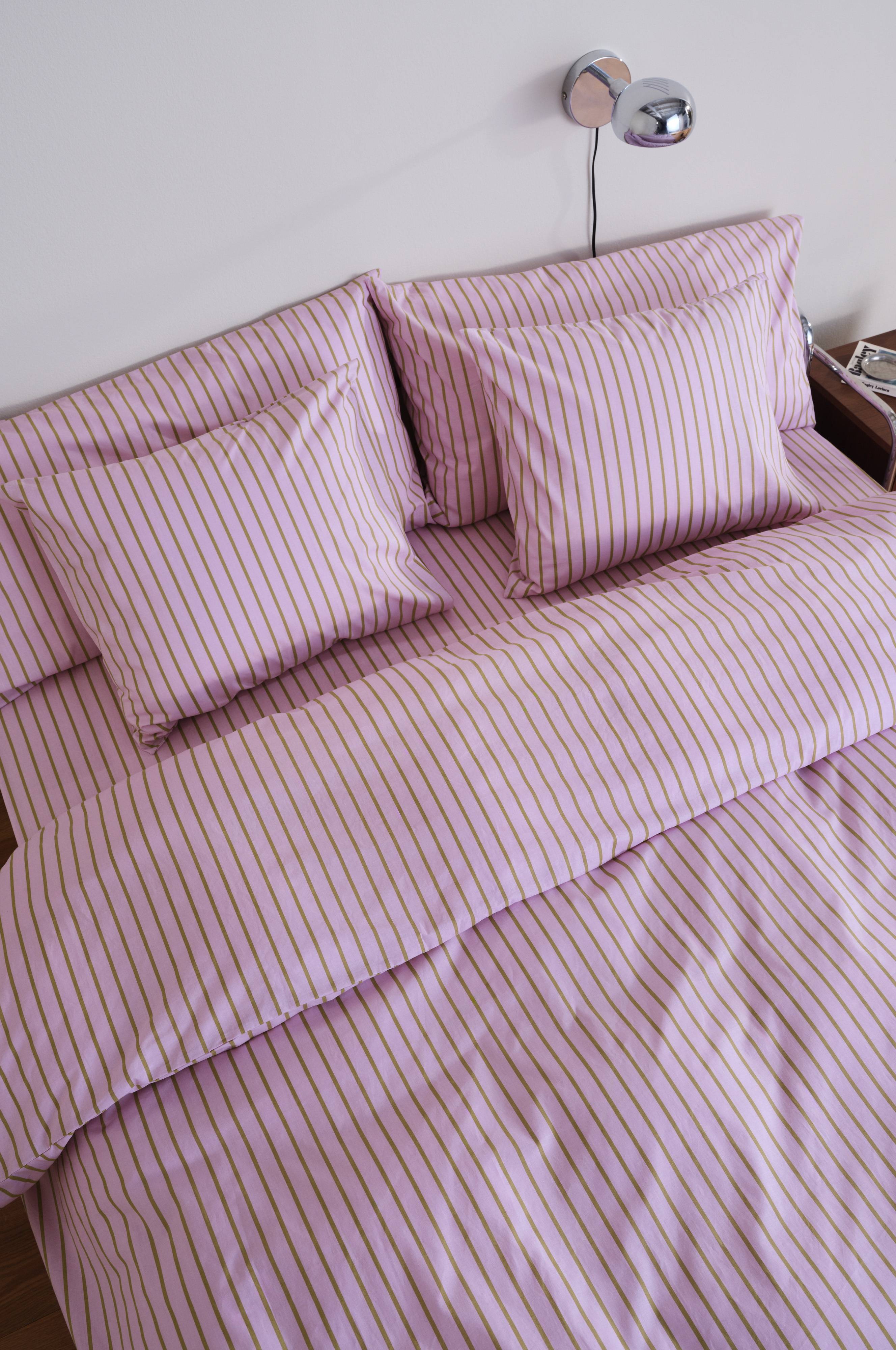 SIMA bäddset tillverkat av ekologisk bomull. En lyxig komfort med extra brett påslakan. Tryckta ränder i krispiga färger. Praktiska handhål för täcket. Förvandla ditt sovrum till en vilsam plats.