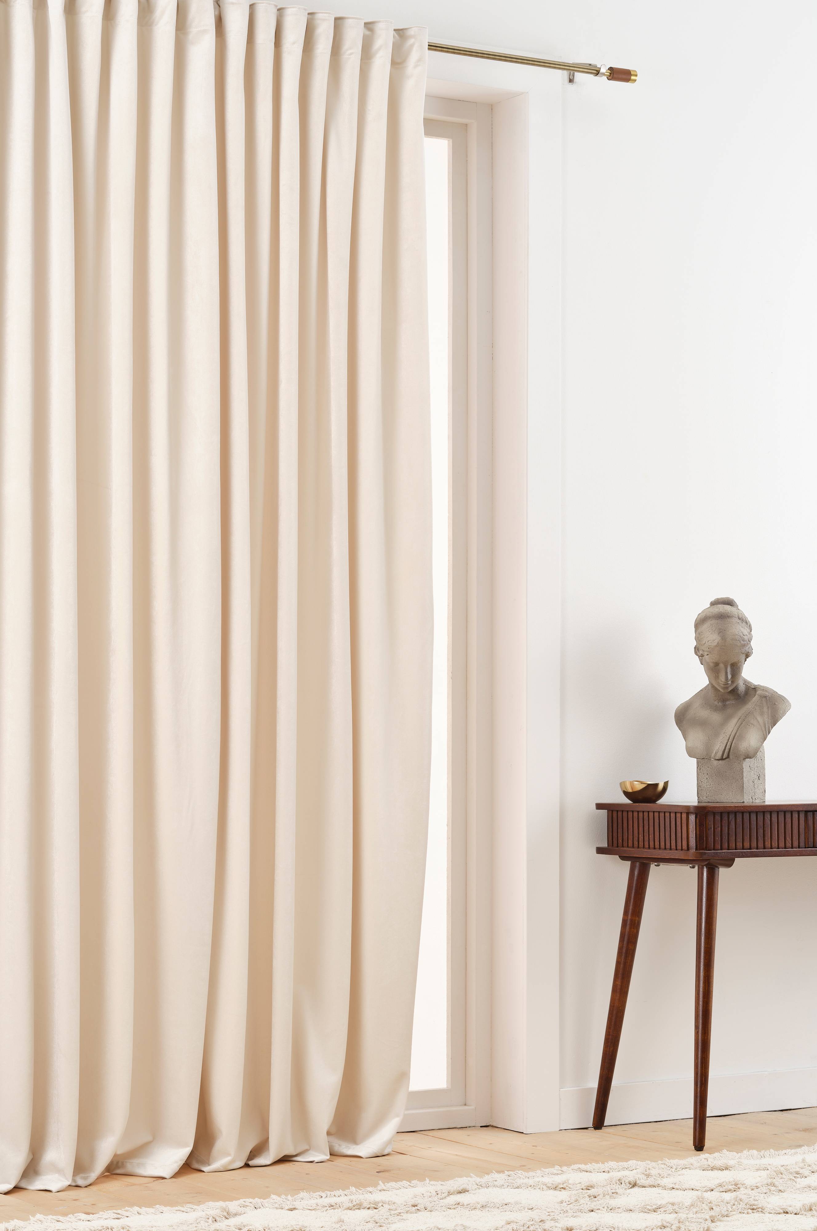 En enfärgad gardinlängd i sammet med påsytt multifunktionsband. Lyxig extra bred gardin i tungt fallande sammet med en vacker lyster som ger rummet en mjuk känsla. En multifunktionell sammetsgardin som ger dig möjlighet till två olika upphängningar. Allt för att gardinen ska passa just ditt hem och din stil. Sammetsgardinen kan hängas upp med dold hälla eller fingerkrokar.