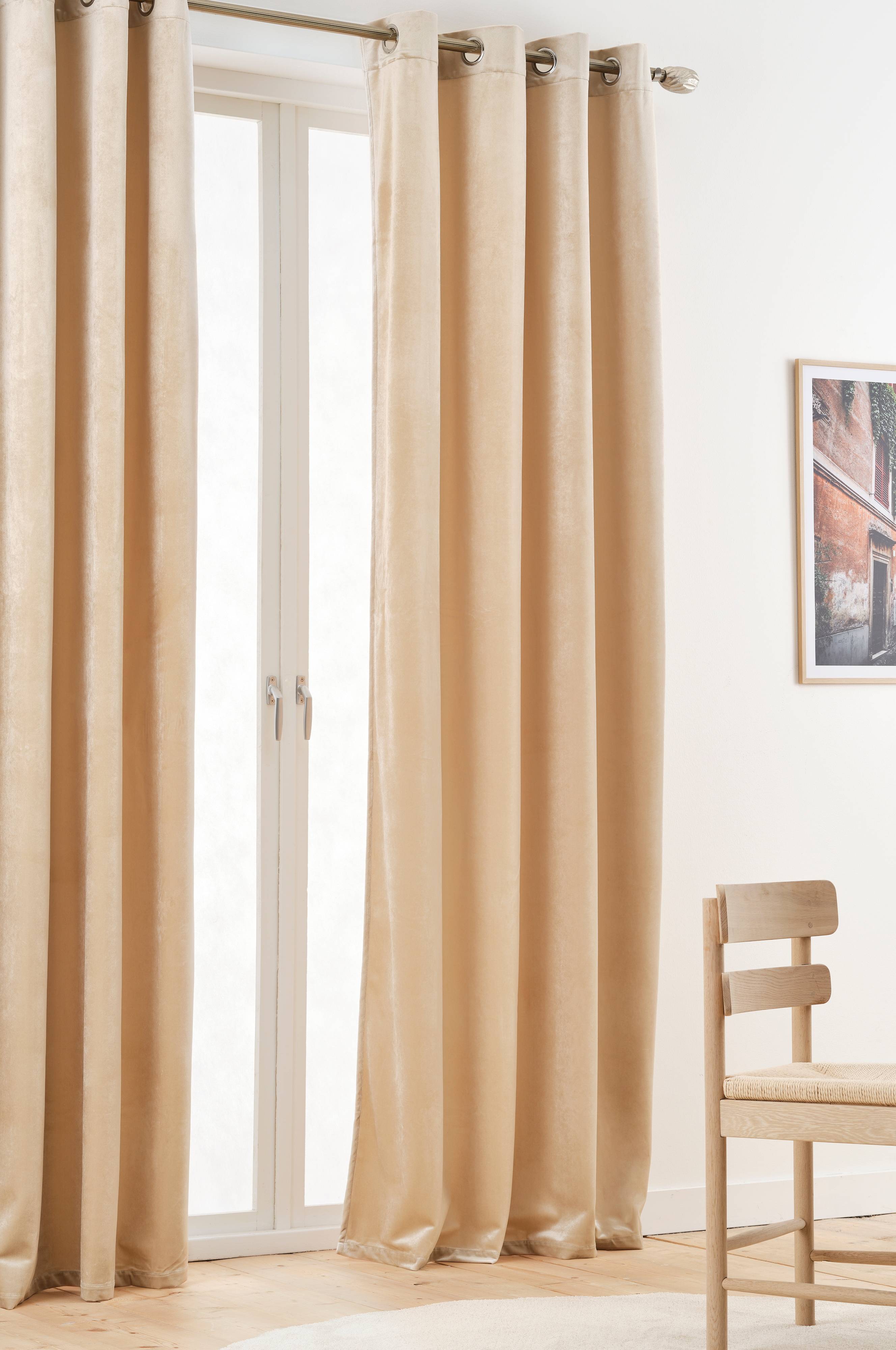 2-pack enfärgade öljettlängder i sammet. 8 st metallöljetter per längd. Lyxig gardin i tungt fallande sammet med en vacker lyster som ger rummet en mjuk känsla. En sammetsgardin med öljetter som ger ett böljande fall. Träs enkelt på en gardinstång.