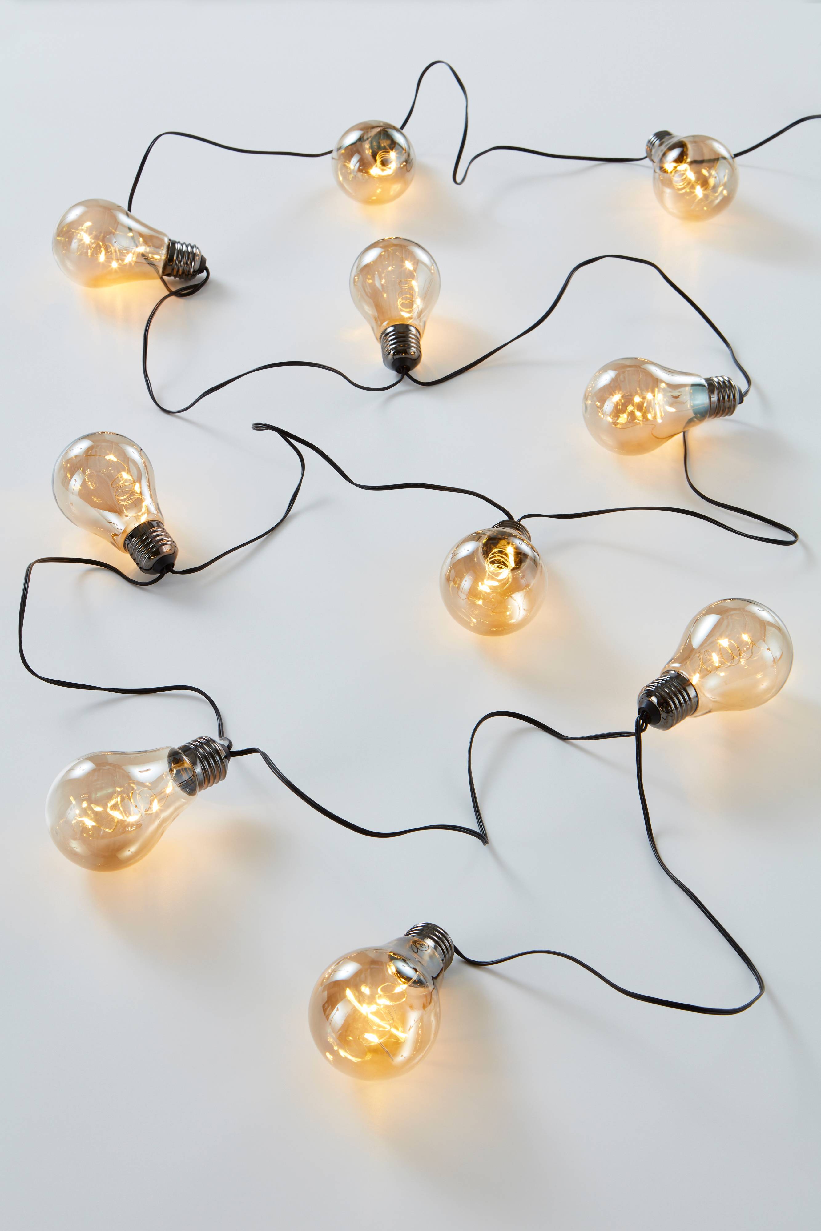 Ljusslinga med 10 LED-ljuskällor med rökfärgade glashöljen som skapar mysig stämning och ett mjukt sken. Slingan är för inomhusbruk men kan också användas utomhus under tak.