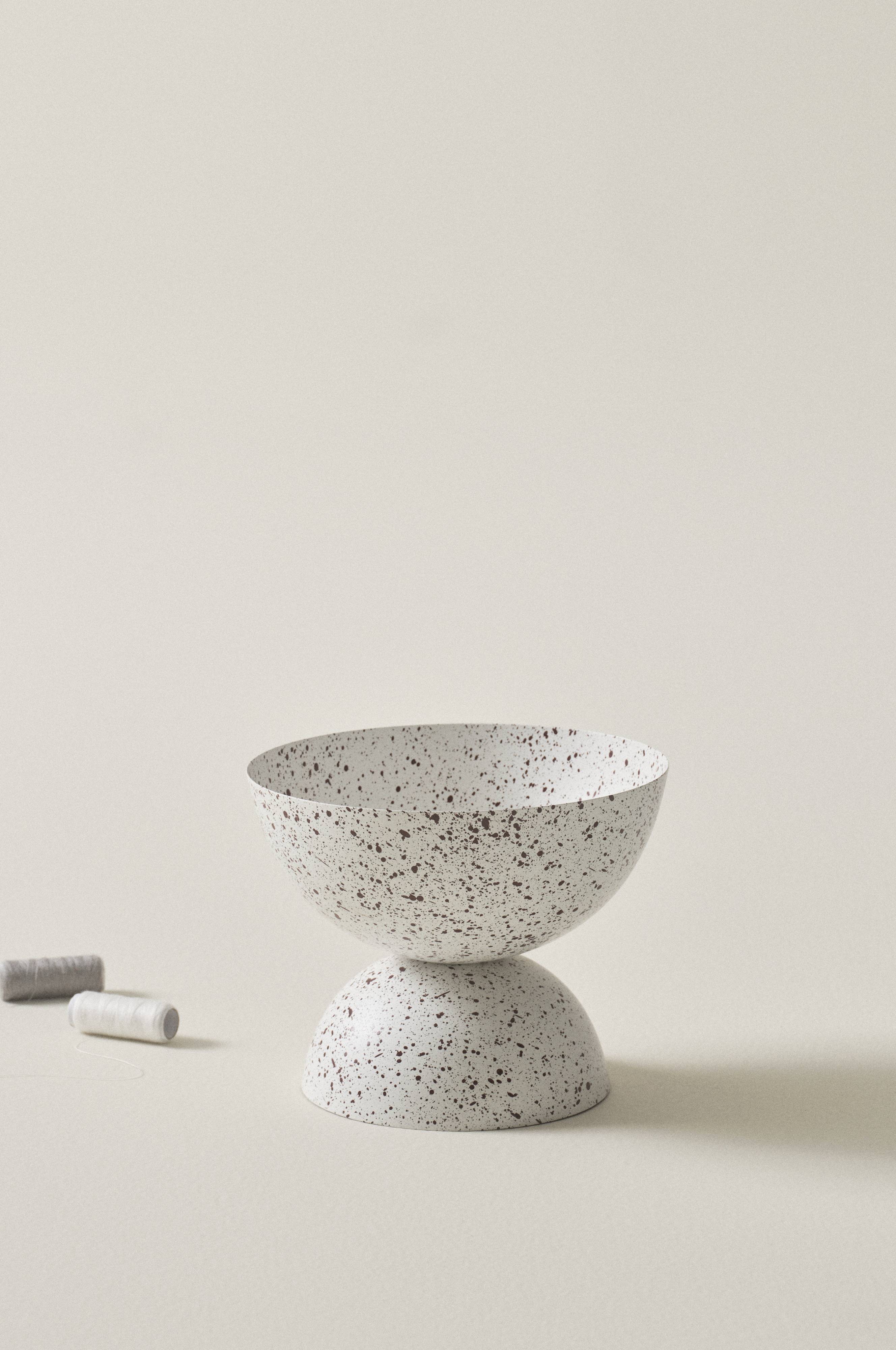 Dekorationsskål av järn med terrazzoinspirerad målning. Skålens form och färg skapar ett fint blickfång.