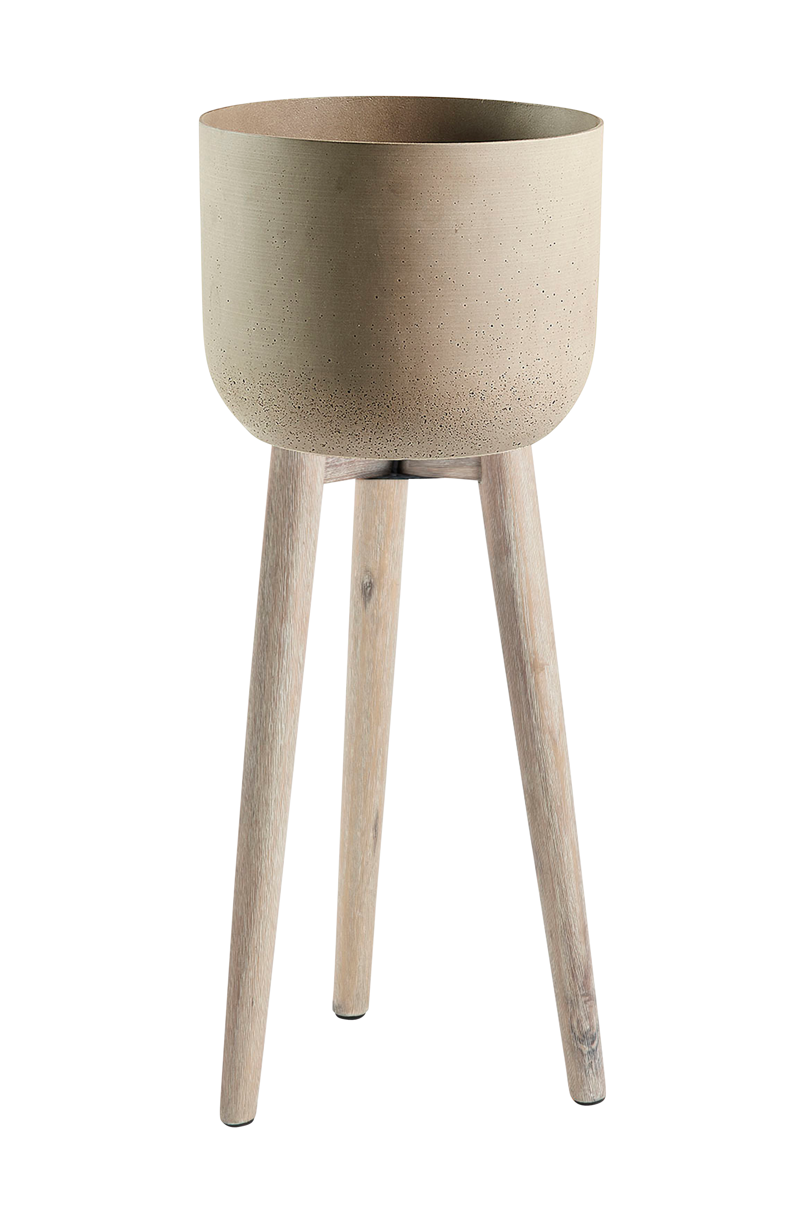 Kruka av cement med ben av akaciaträ. För användning inomhus och utomhus under tak. Höjd (cm) + Bredd (cm) + Djup (cm) + Volym (m³) + Vikt (kg): 86 + 36 + 36 + 0,108 + 6,3