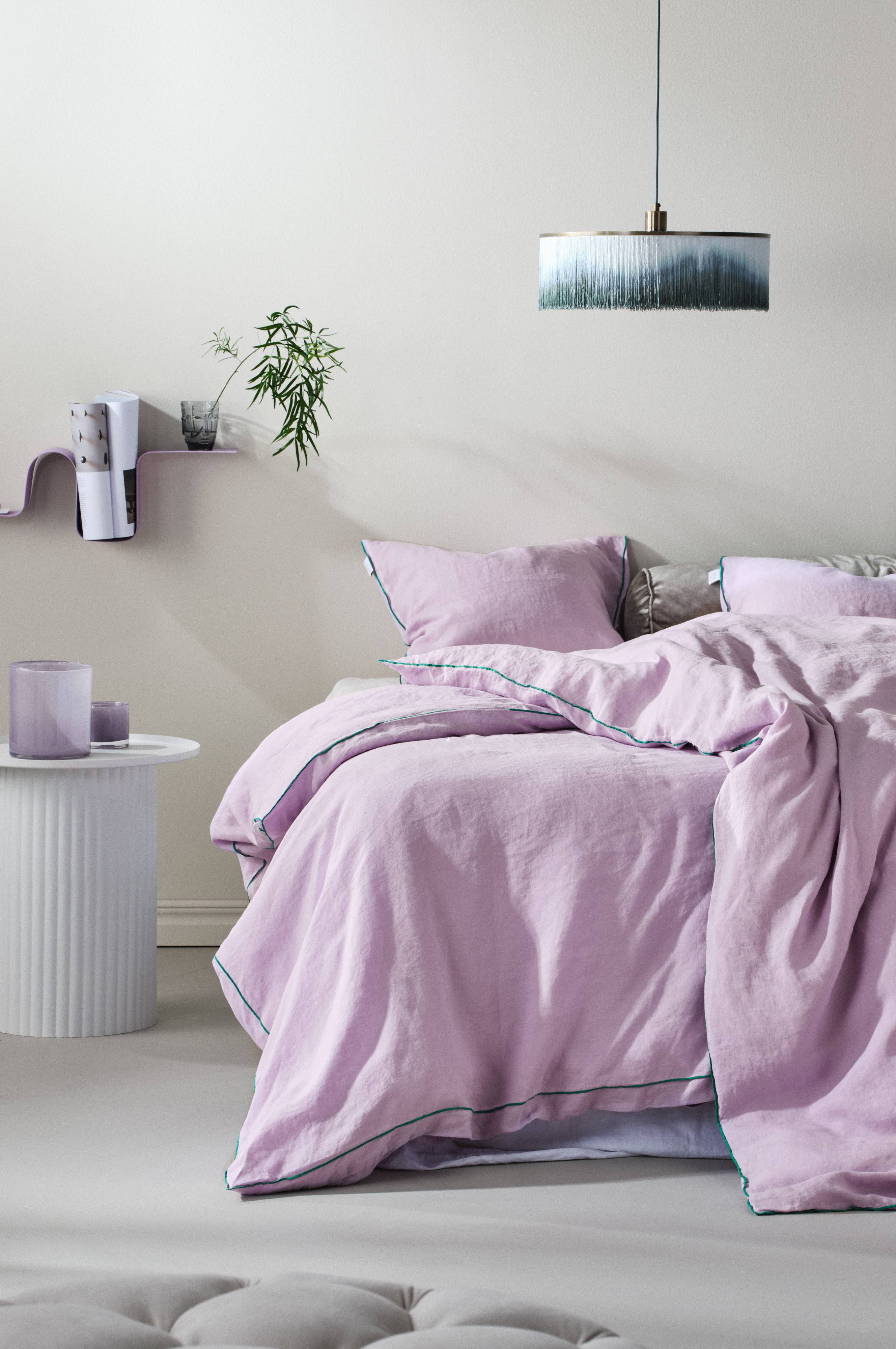 Påslakanset i två delar med ett påslakan och ett örngott av lin som tvättas för en extra mjuk känsla. STICH står för schyssta sängkläder i ett tidlöst material. Linnetyget är enfärgat och den snygga overlocksömmen runt om är kontrastfärgad i en pigg färg. Lin är ett fint naturmaterial med speciella egenskaper och härlig känsla. Linne värmer när det är kallt och är svalt att sova i när det är varmt. När linet tvättas får det ännu mjukare struktur som är behaglig mot huden. Öppning i övre hörnen på påslakanet, som underlättar att trä påslakanet över täcket. Knappar för tillslutning i påslakanet. Trådtäthet på 104 tc. (Trådtätheten talar om antalet trådar, thread counts, per kvadrattum i ett tyg. Ju högre trådtäthet desto högre kvalité. Med undantag för linne som ofta vävs glesare för att få den rätta känslan.)