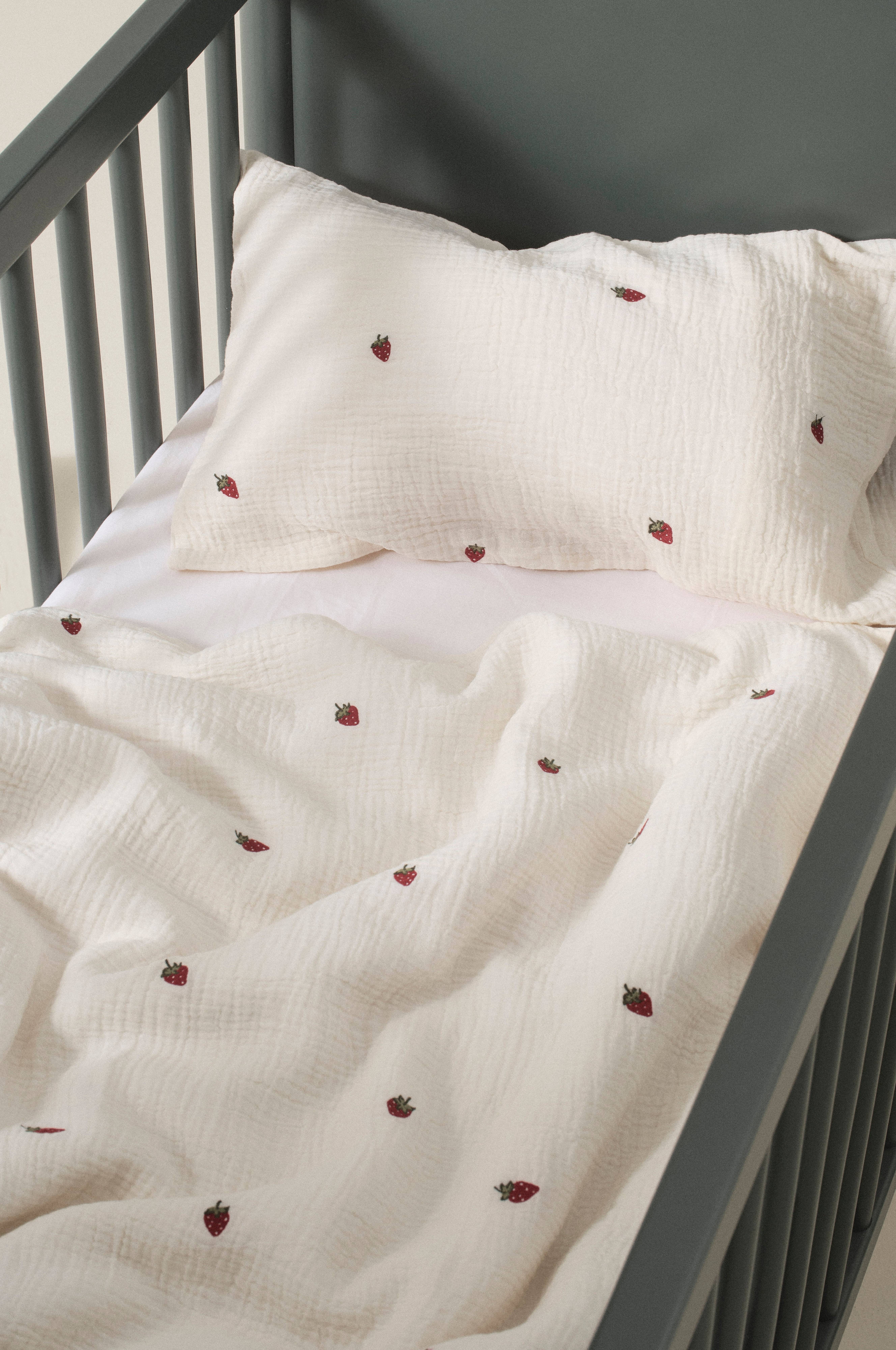STRAWBERRY MINI påslakanset spjälsäng – ekologisk