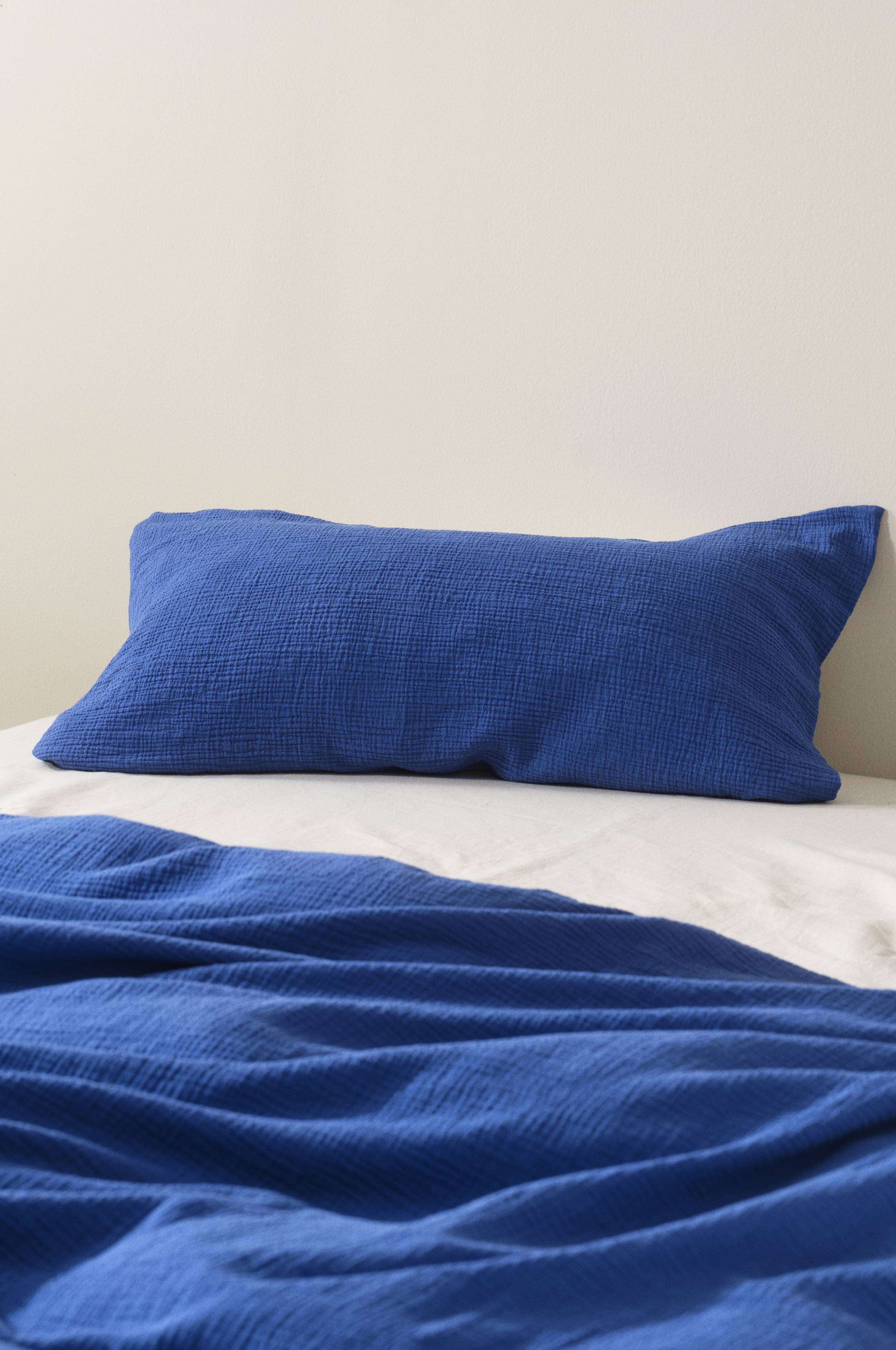Enfärgat örngott i härlig, ekologisk bomullsmuslin. Muslin är ett mjukt, tunt tyg i två lager, vävt med lite bubblig effekt, vilket gör tyget mjukt och extra lättskött. Du behöver inte stryka eller mangla. Det är dessutom tvättat för en mjukare känsla och för att få fram den bubbliga strukturen, det behagliga muslintyget är skönt att sova i. Trådtäthet på 178 tc. (Trådtätheten talar om antalet trådar, thread counts, per kvadrattum i ett tyg. Ju högre trådtäthet desto högre kvalité.)