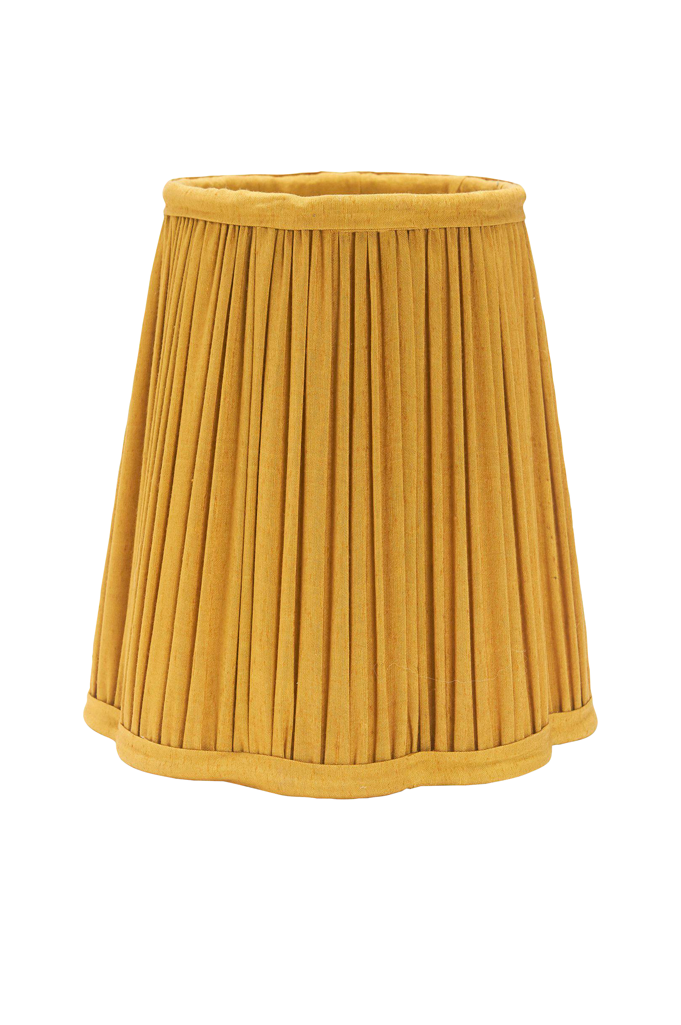 Siv lampskärm med rynkat tyg i sidenlook och fodrad med bomullstyg i samma färg. Skärmen har en vågig form nedtill som skapar ett fint flöde av ljuskällan. Denna skärm kan användas till golvfot med böjbar arm, vägglampa samt bordslampa med böjbar arm. Lampskärmen har ett E27 toppringsfäste. Höjd 20 cm, bredd nertill 20 cm, bredd upptill 13 cm.