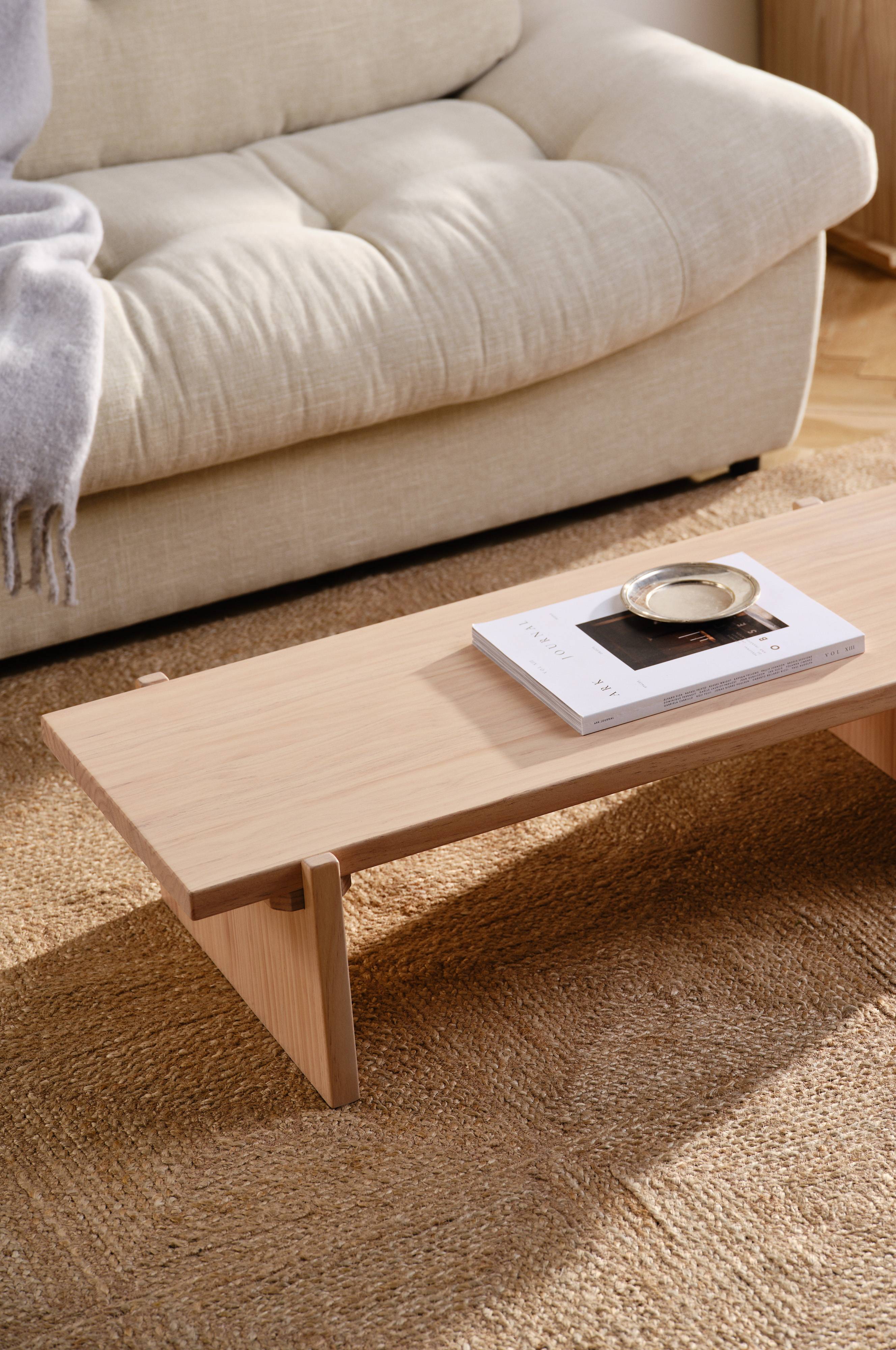TOTTORI soffbord har en minimalistisk japanskinspirerad estetik och är tillverkat av furu för att ge värme och enkelhet till ditt vardagsrum. Det är en del av TOTTORI-familjen och harmoniserar perfekt med matchande föremål för ett sammanhängande utseende. De rena linjerna och den eleganta designen gör den till en idealisk mittpunkt för alla interiörer, som förkroppsligar skandinaviska trender samtidigt som den levererar praktisk elegans och funktionalitet. Förhöj ditt hem med denna tidlösa möbel.