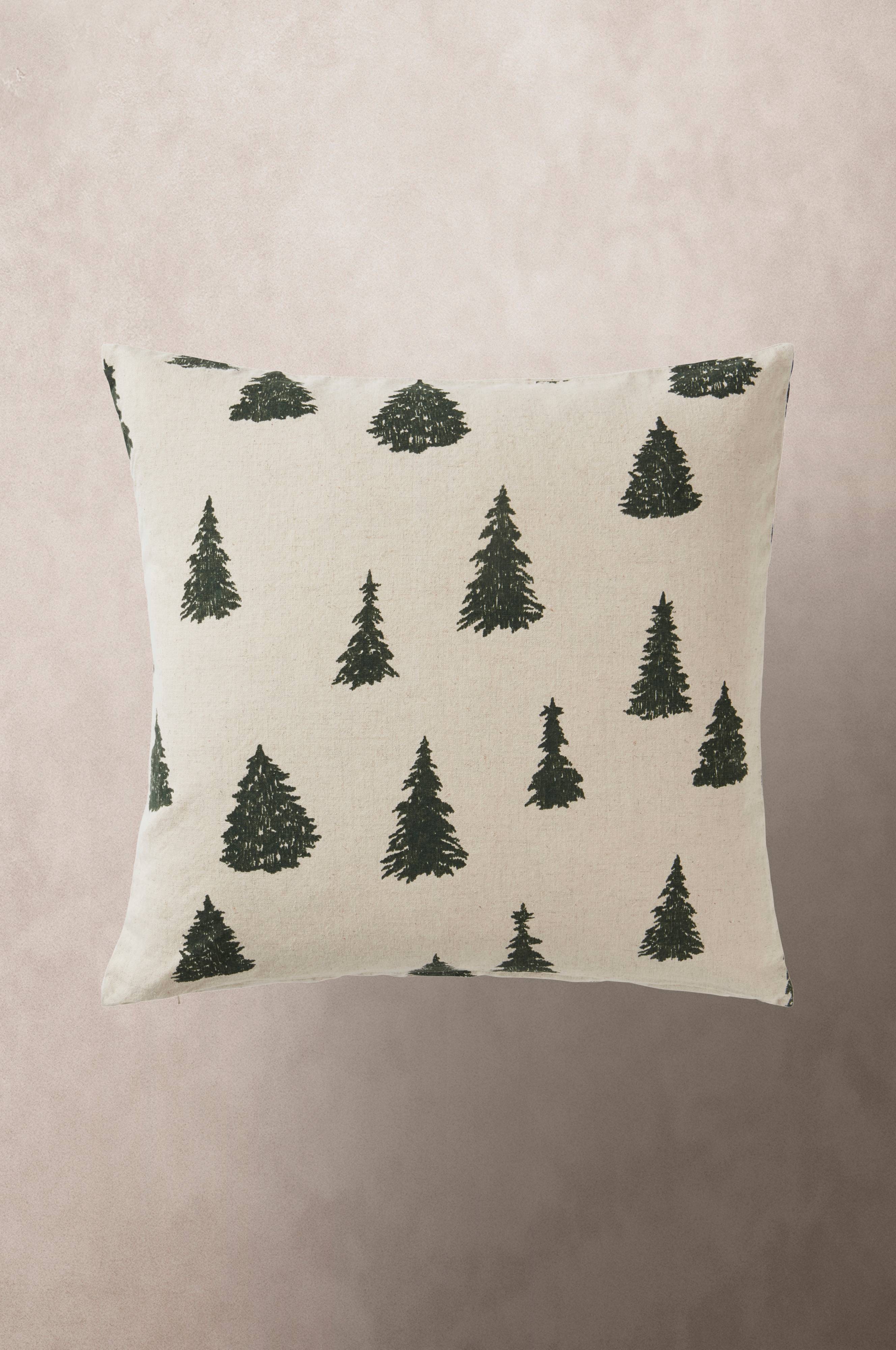 1-pack kuddfodral i programmet TREES, som är en skön plaggtvättad kvalité av bomull och lin, vilket gör tyget extra mjukt. De skissade granarna på ofärgad botten gör naturen närvarande och TREES är ett program som passar året runt likväl som det ger lugn och harmonisk julstämning. Kuddfodralet har dragkedja i nederkant. Tygets vikt 210 g/m².