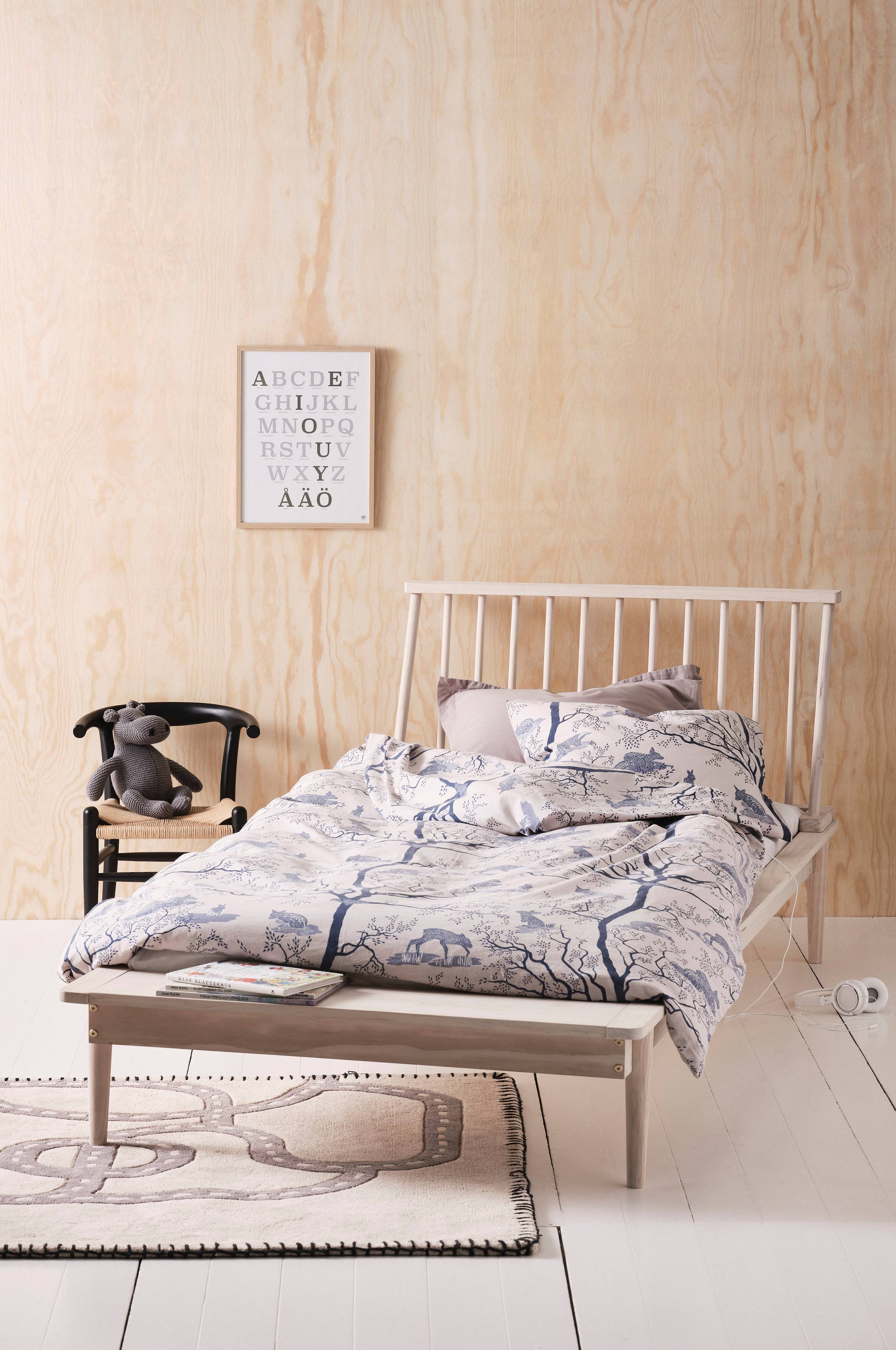 Barnsäng av FCS-certifierad furu med såpad yta och ribbotten gjord av plywood. VILJO är en stilren barnsäng i klassisk design som blir en snygg detalj i barnrummet. Huvudgaveln med ribbor och en skön lutning bjuder in till mysiga lässtunder och vid fotänden av sängen finns en praktisk inbyggd bänk.