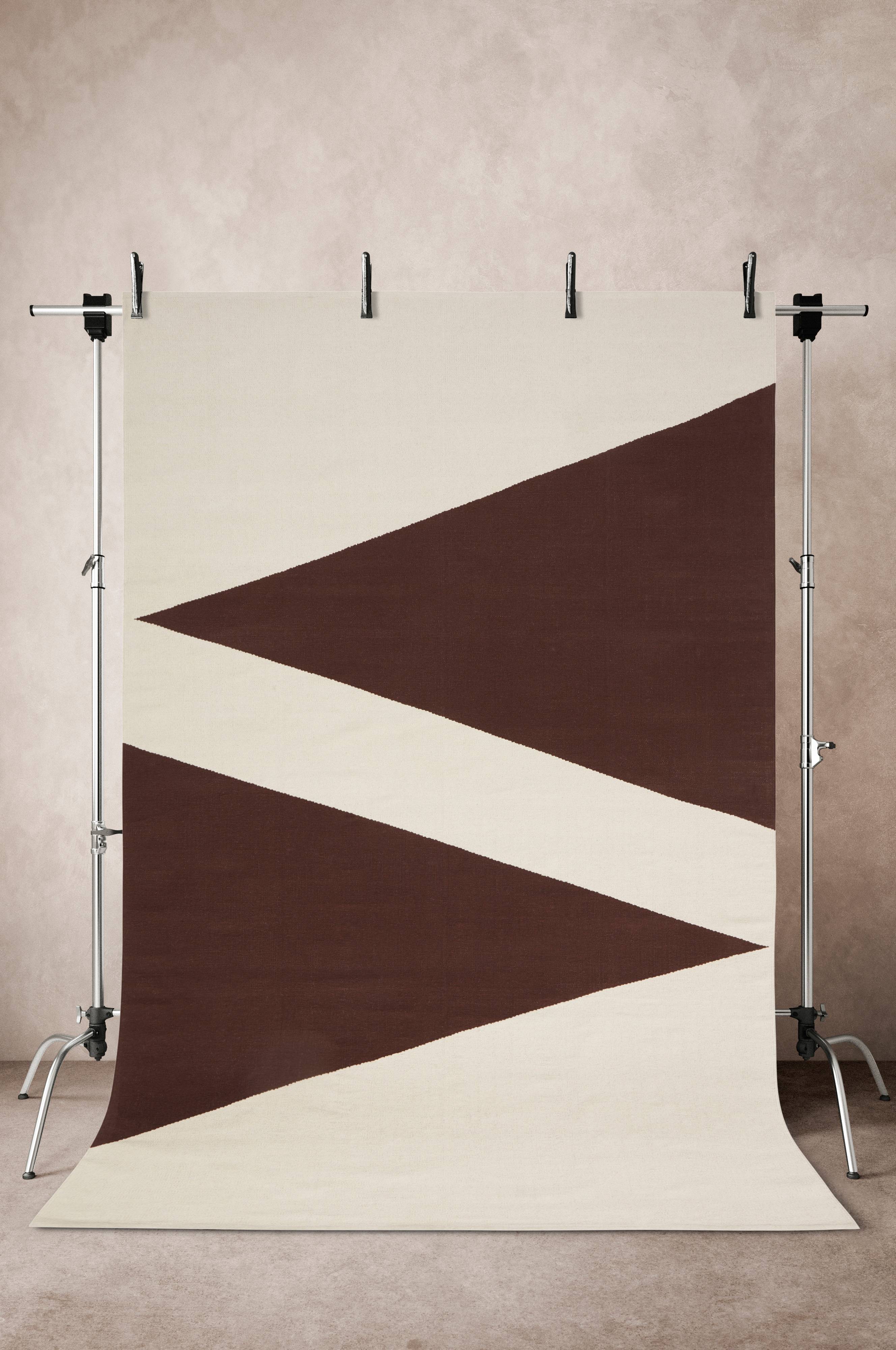 ElpyHandvävd, slätvävd bomullsmatta med garnfärgat mönster som skapas av trianglar. Tjocklek 0,5 cm. 910 g/m².