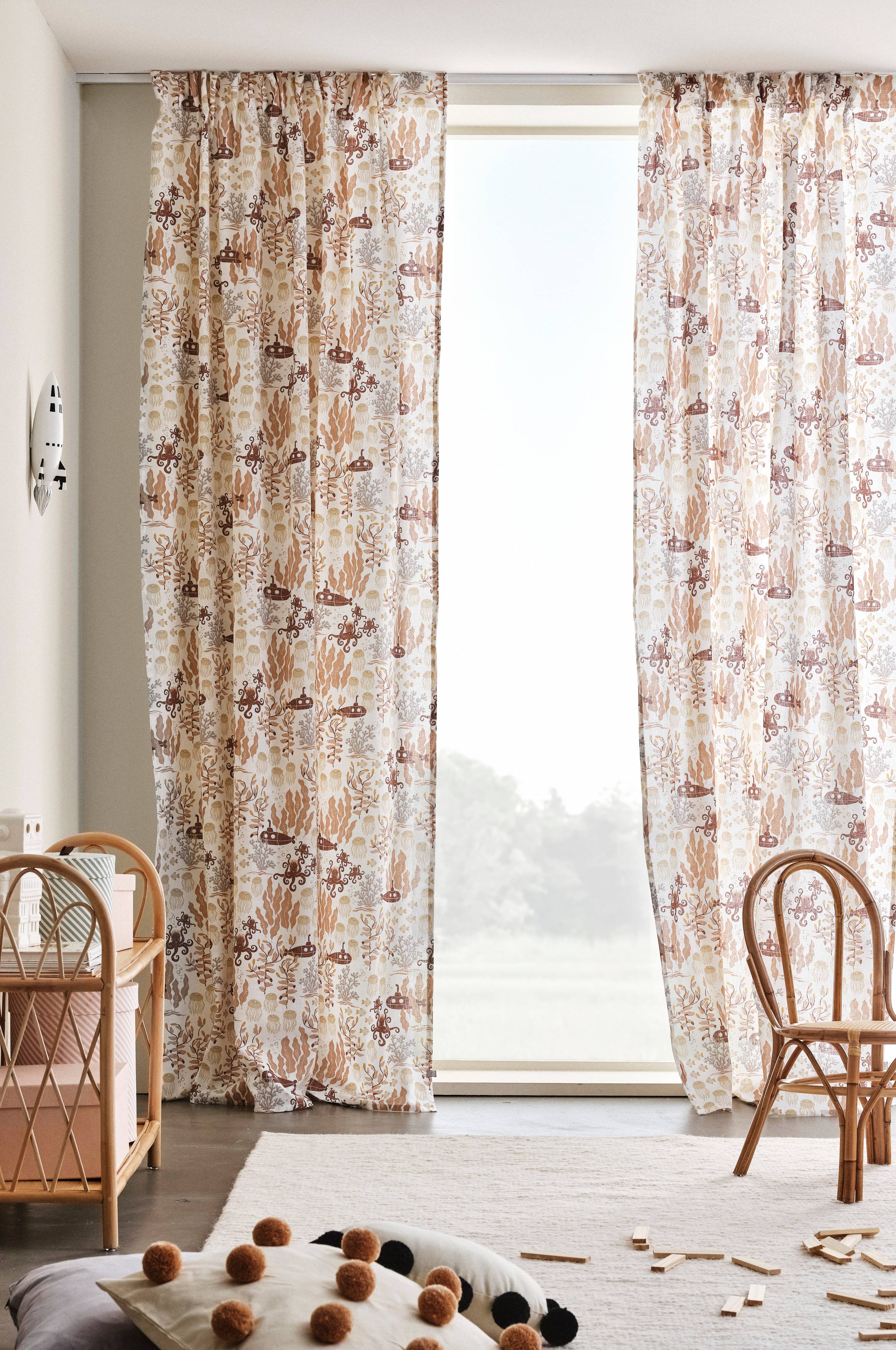 Två gardinlängder i fin kvalité av linne och bomull med tryckt mönster designat av Maria Carlberg. Det härliga mönstret har inspirerats av ett sagoliv under vattenytan och färgerna är lugna och harmoniska. WATERS är en mysig kollektion som ger utrymme för fantasin.