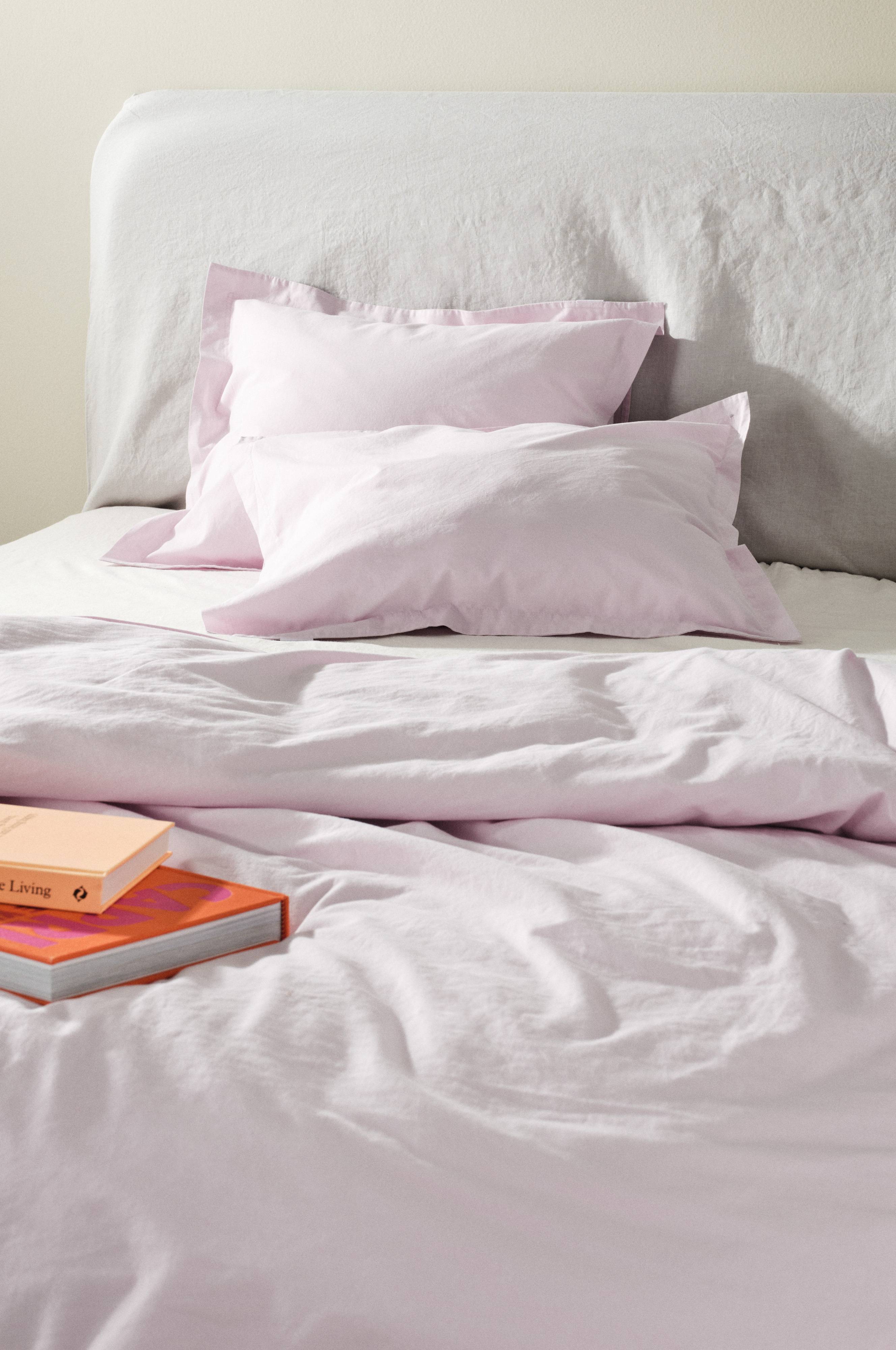2-pack örngott i ekologisk bomull. Örngotten är plaggtvättade vilket innebär att de tvättats efter sömnad och känslan blir extra mjuk och skön. Örngottet har 3 cm bred vinge runt om, dubbelsömmar och knappar för tillslutning. Paketerade i en fin tygpåse med tryck och dragskoöppning. Trådtäthet på 120 tc. (Trådtätheten talar om antalet trådar, thread counts, per kvadrattum i ett tyg. Ju högre trådtäthet desto högre kvalité).