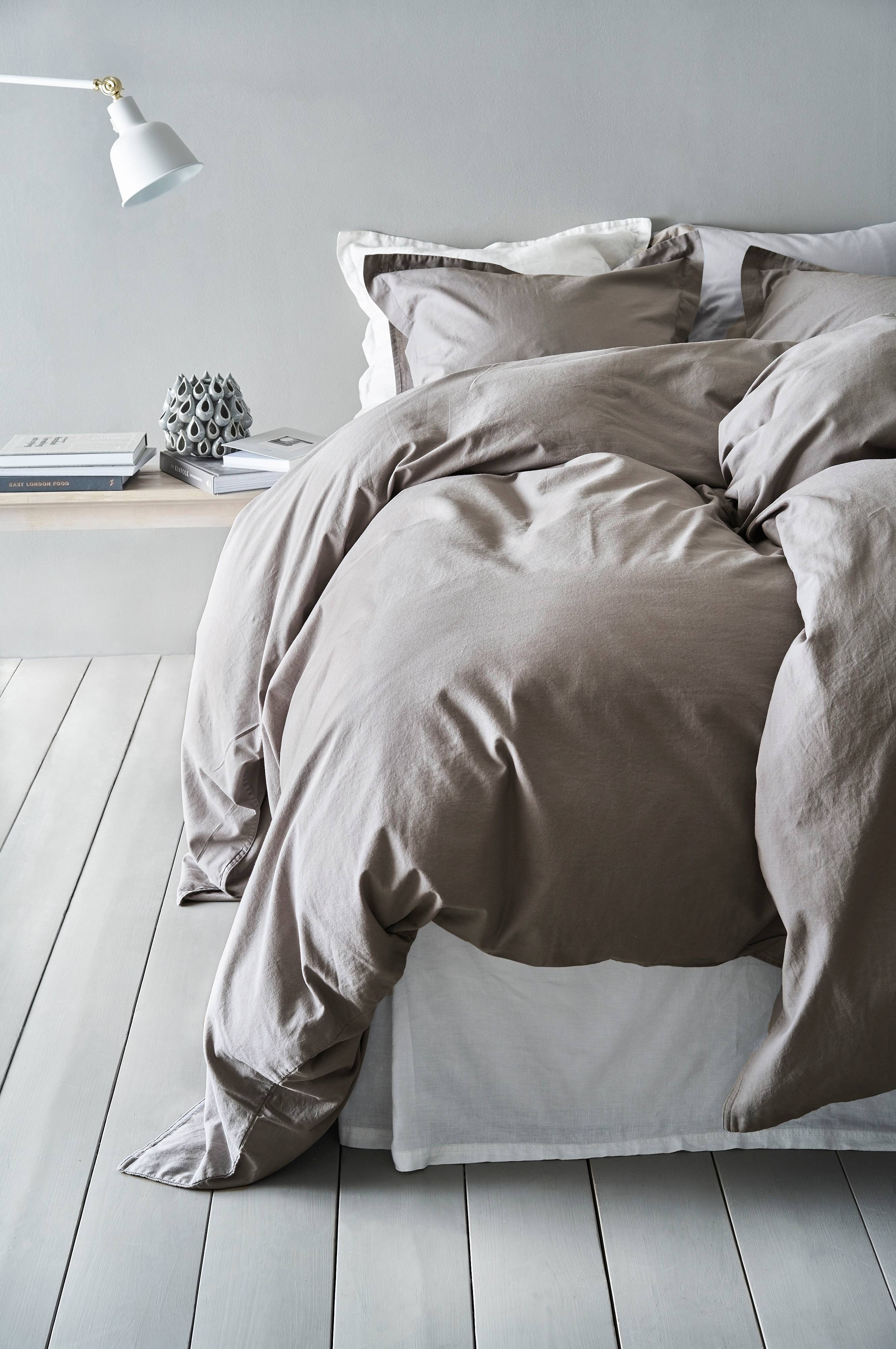 Enfärgat påslakanset i 2 delar av ekologisk bomull. Setet är plaggtvättat vilket innebär att det tvättats efter sömnad och känslan blir extra mjuk och skön. Dubbelsömmar och knappar för tillslutning. Örngottet har 3 cm bred vinge runt om. Setet kommer i en fin tygpåse med tryck och dragskoöppning. Trådtäthet på 120 tc. (Trådtätheten talar om antalet trådar, thread counts, per kvadrattum i ett tyg. Ju högre trådtäthet desto högre kvalité).