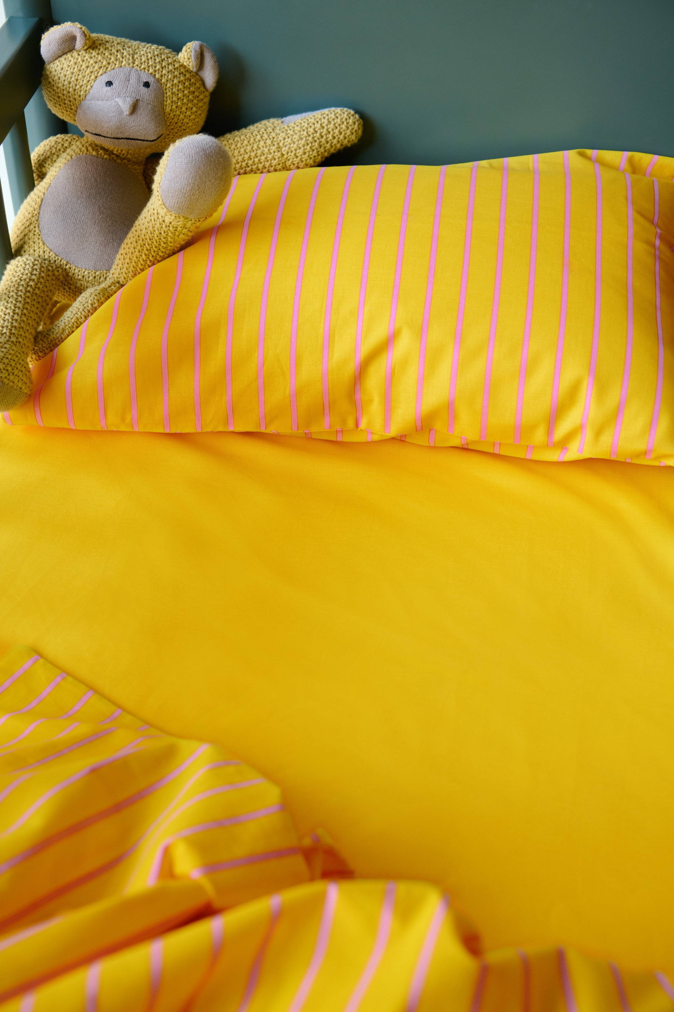 Enfärgat dra-på-lakan i ekologisk bomull med resår i hörnen, som håller lakanet på plats, även i sängen hos små barn som rör sig mycket i sömnen. Dra-på-lakanet passar till spjälsäng. Bomull är mjukt och behagligt att bädda med. Den elastiska kanten gör att lakanet sitter bra på madrassen. Matcha med något av våra härliga påslakan till barn.