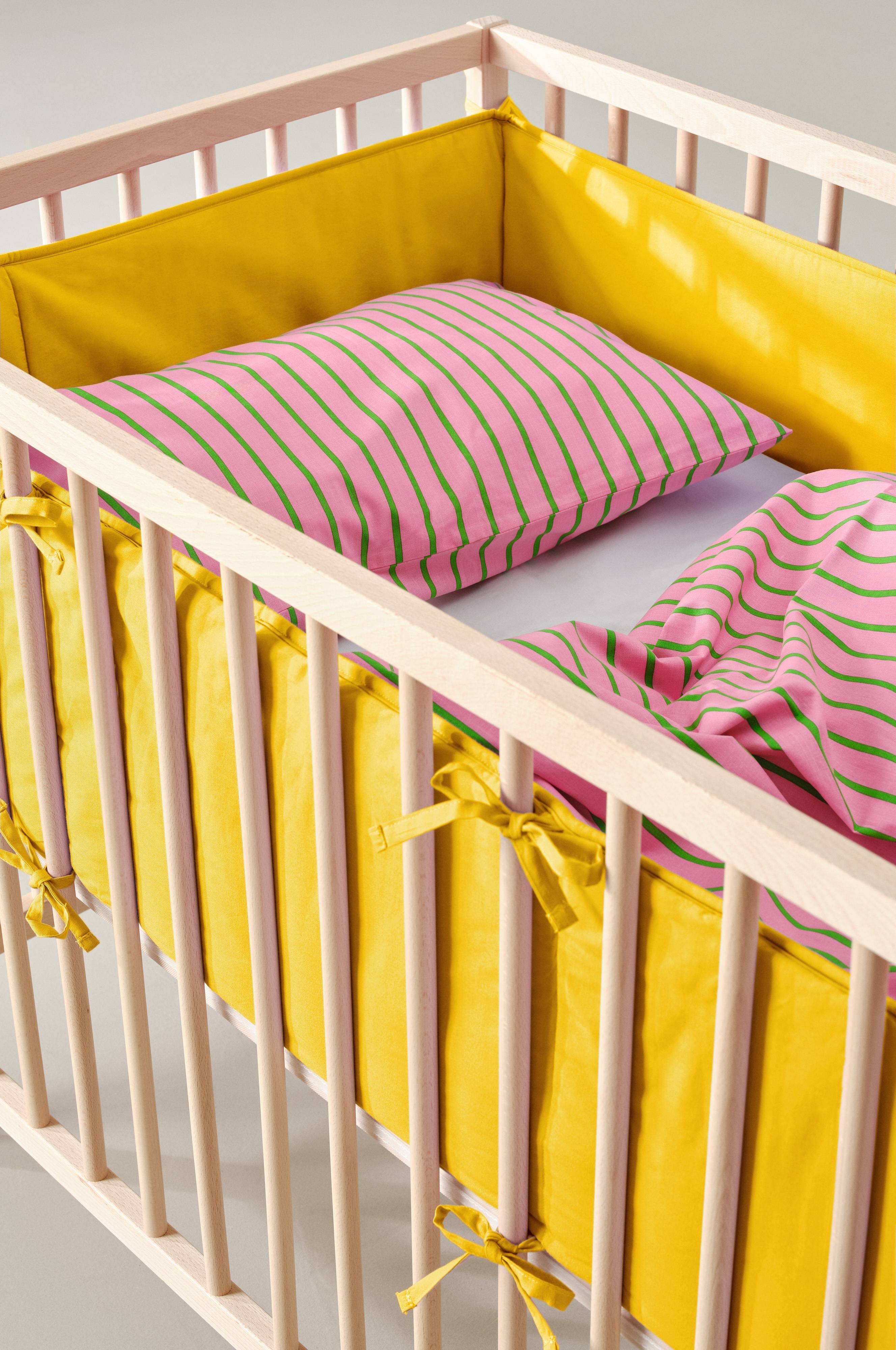 ZACK MINI spjälsängsskydd i ekologisk bomull och fylld med återvunnen polyester ger en mjuk touch till ditt barns spjälsäng. Den är lätt att fästa med snören och kombinerar funktionalitet med design för ett snyggt tillägg till inredningen i barnkammaren.