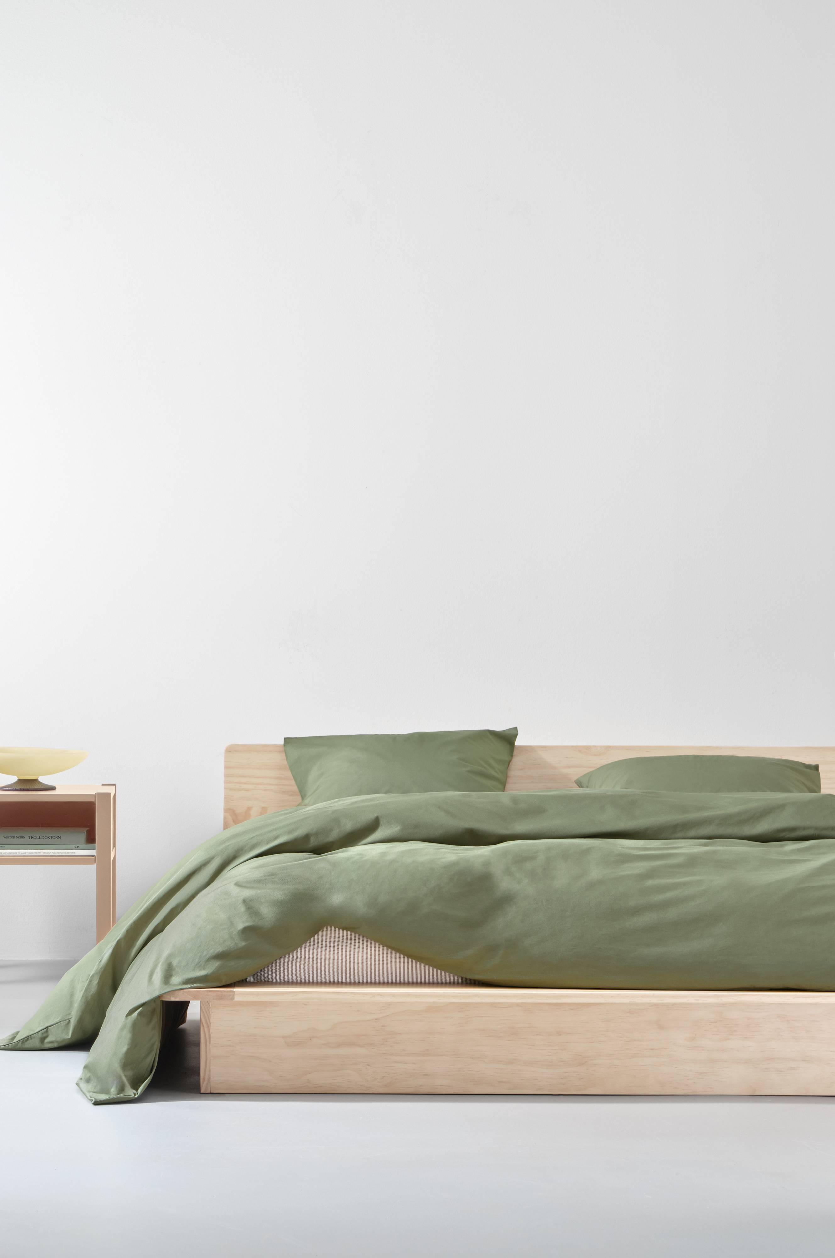 Enfärgat påslakanset i tre delar, ett extra brett påslakan och två örngott i underbar percale av ekologisk bomull. Percale är ett extra mjukt och behagligt tyg som vävts med tunna, fina bomullstrådar. .