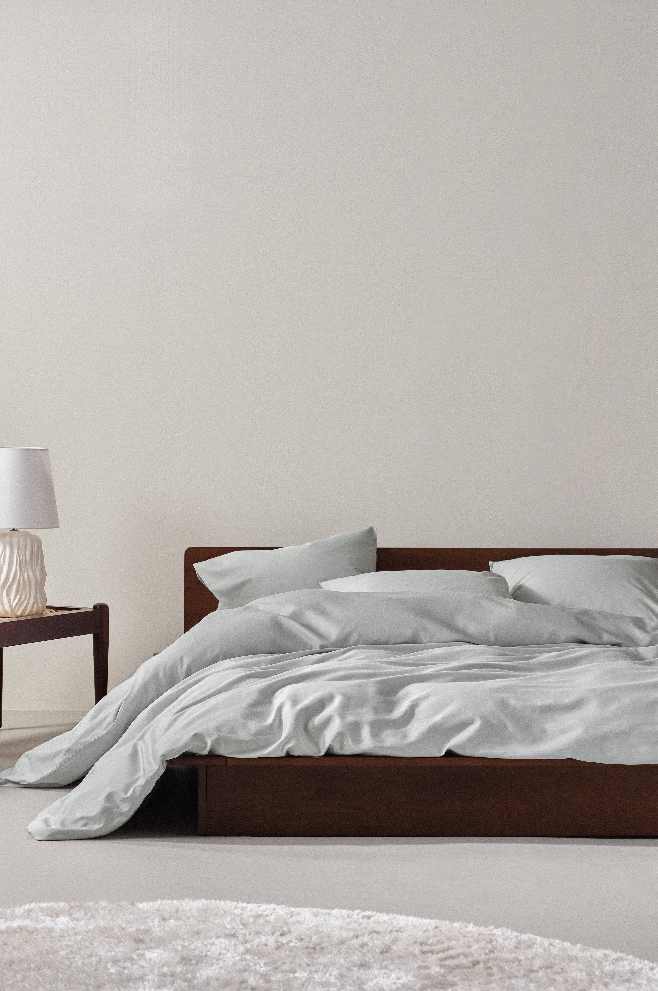 Enfärgat påslakanset i två delar, ett påslakan och ett örngott i exklusiv satin av ekologisk bomull. Satin är en vävteknik som ger ett underbart slätt, mjukt och lent tyg. Bomull som vävs med denna teknik ger ett tyg med fin lyster och lyxig känsla.
