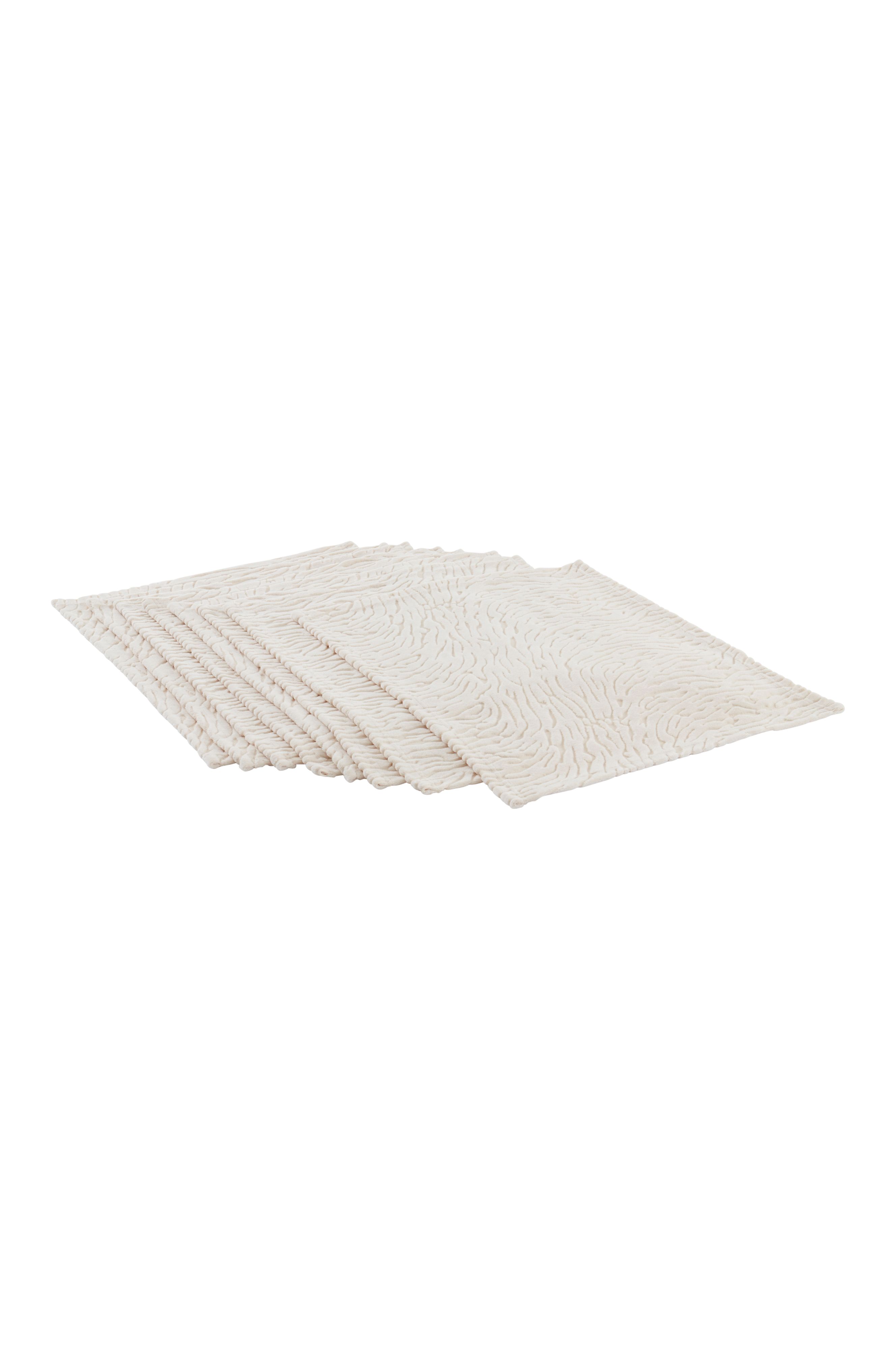 8-pack bordstabletter i fint sammetstyg med zebramönster ton-i-ton i så kallad burnout. Tyget är av mjuk och smidig polyester. Bordstabletter är praktiskt att duka med på många sätt, de skyddar bordet och de skyddar duken samtidigt som bestick och glas slamrar mindre. Det är mycket lättare att tvätta en tablett än en hel duk och ofta behöver du inte tvätta tabletterna mellan varje måltid utan du skakar dem och kan använda dem flera gånger innan de måste tvättas. Med små barn i familjen är det otroligt smidigt att duka med bordstabletter.